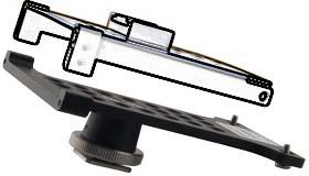 Adapter with a plate to connect to MCR41/42 and a “cold” male flash shoe on the bottom.