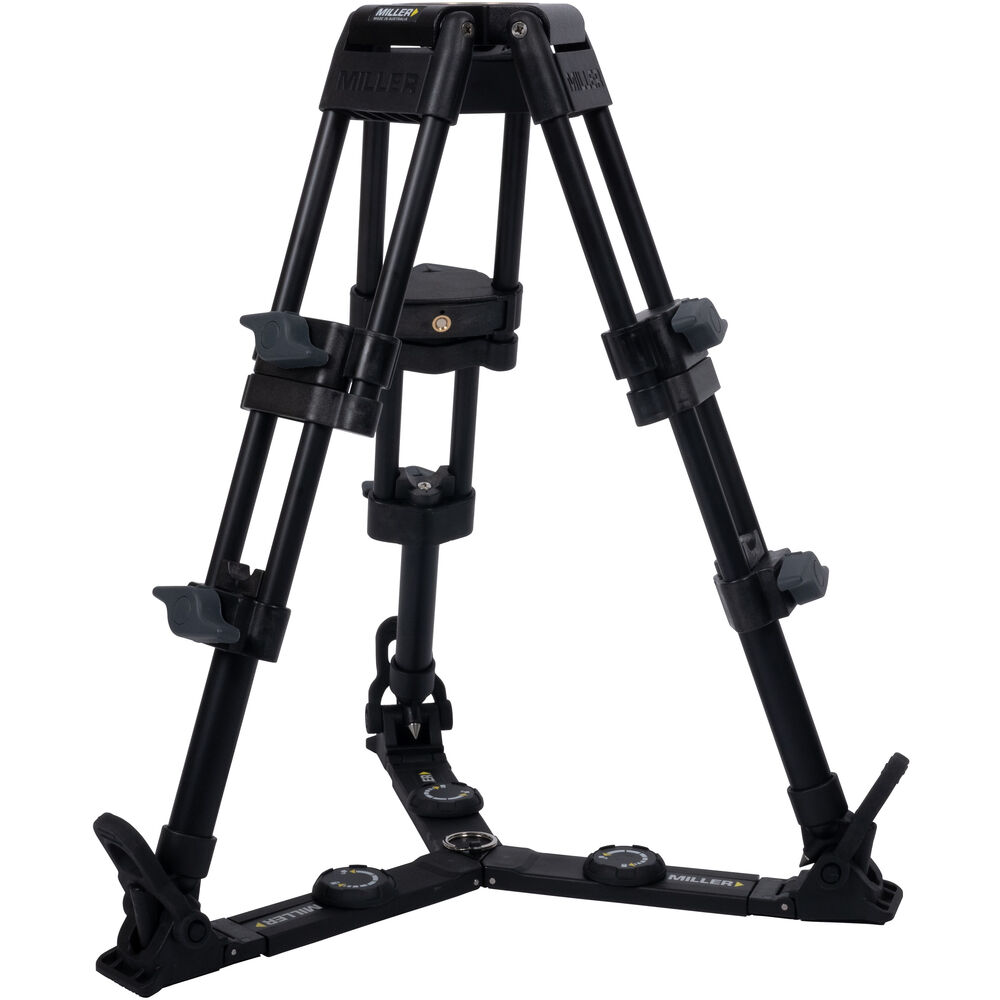 Get low to the ground and capture dynamic footage with this 2-Stage Alloy Tripod from Miller. Strong, versatile, and compact, this tripod features a working height of 9.8 to 20.5" and is compatible with 75mm ball heads. Two-stage legs are designed with single-twist positive leg locks for quickly adjusting the height of the tripod, and durable black anodized alloy tubing securely supports camera loads up to 55 lb. The included ground spreader provides torsional strength, and integrated stainless steel spikes provide stability and slip resistance. A case is also included for storage and transport.