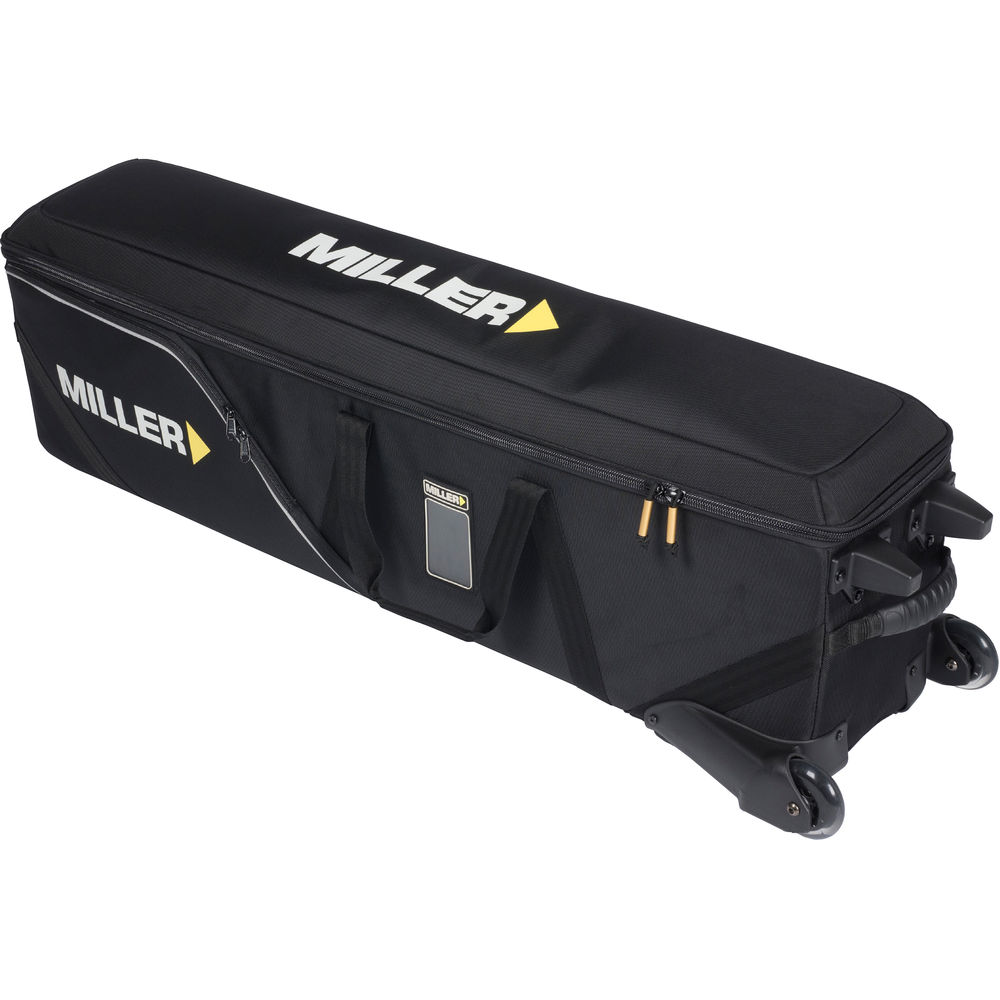 Store, transport, and protect your gear with the black Miller Arrowx Shell Case with Wheels for Sprinter II & HD Tripod System. The case features zipper closure, head-end cradle with straps to secure your fluid head, and zippered storage pockets. For strength and durability, the case is constructed with a ballistic nylon shell, HDPE lining, and hard plastic skid pads. Carry the case with the dual strap handles, padded grab handle, or bottom haul handle. You can also roll the case with the built-in, wide-set wheels. Two bottom feet allow the case to be stored in an upright position. An external pocket and card holder makes case identification easier.