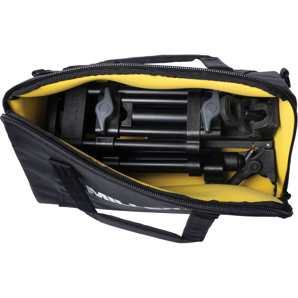 Store, protect, and transport your Miller LW Baby Tripod in the black Softcase from Miller. This case features an external pocket and card holder. Users will appreciate the padded polyester construction and bright yellow interior fabric.