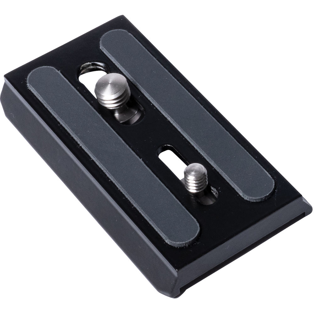 The durable aluminum plate includes both 1/4"-20 and 3/8"-16 camera mounting screws, and the top of the plate features two rubber strips that help protect your camera from scuffing while preventing it from rotating.