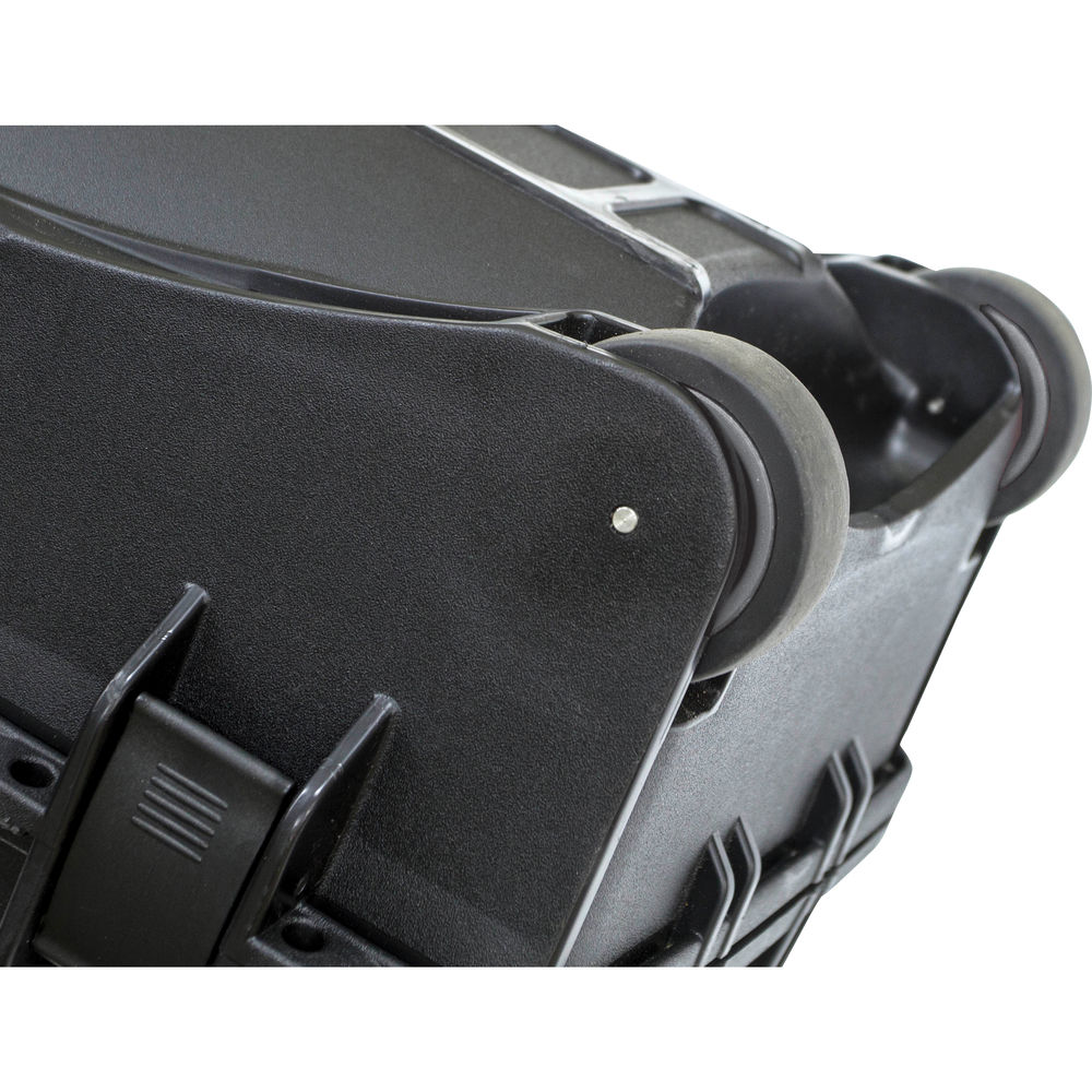 Store, transport, and protect a select Miller system tripod with the black Miller Short Smart Tripod Case with Wheels for 2 Stage Sprinter & Toggle Systems. The case features a latch closure, inner padding, a neoprene O-ring, an automatic air pressure valve, and an IP67 watertight rating. For strength and durability, the case is constructed from special polymers and aluminum. Carry the case with the top and center handles or roll with the built-in wheels.