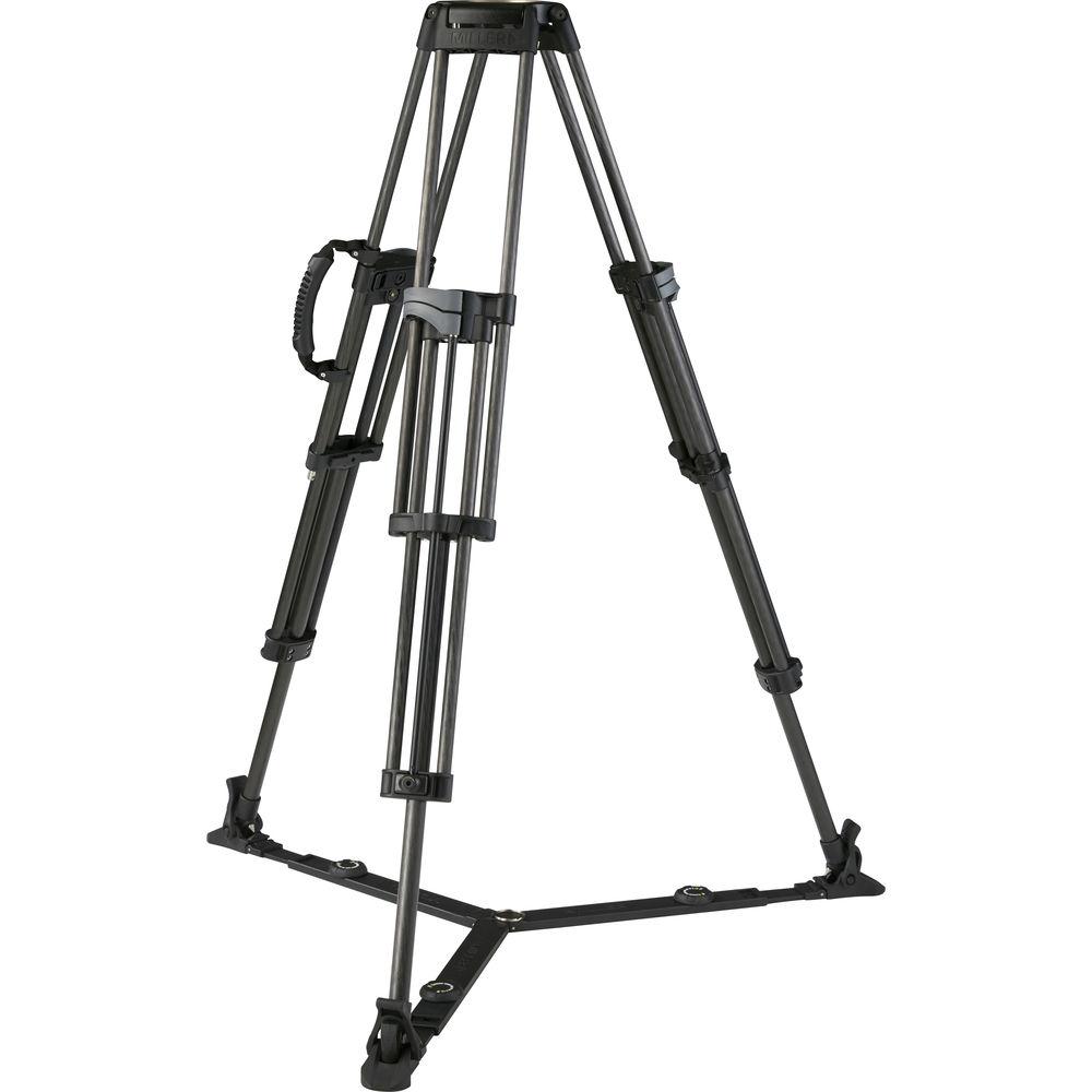 The Miller Sprinter II 2-Stage Carbon Fiber Tripod is a quick-setup solution for a tripod head with 100mm ball base. Its light weight, flip-locks, and rigid construction allow for durability without compromising usability in ENG, EFP, and other pro video applications. Unlike many traditional multi-stage designs, both flip-locks are located on the same section for easy reaching, no matter the height setting. The fast setup is complemented by an in-line carry handle, for portability on set or in the field. Compatible spreaders, rubber feet, and dollys are available separately.