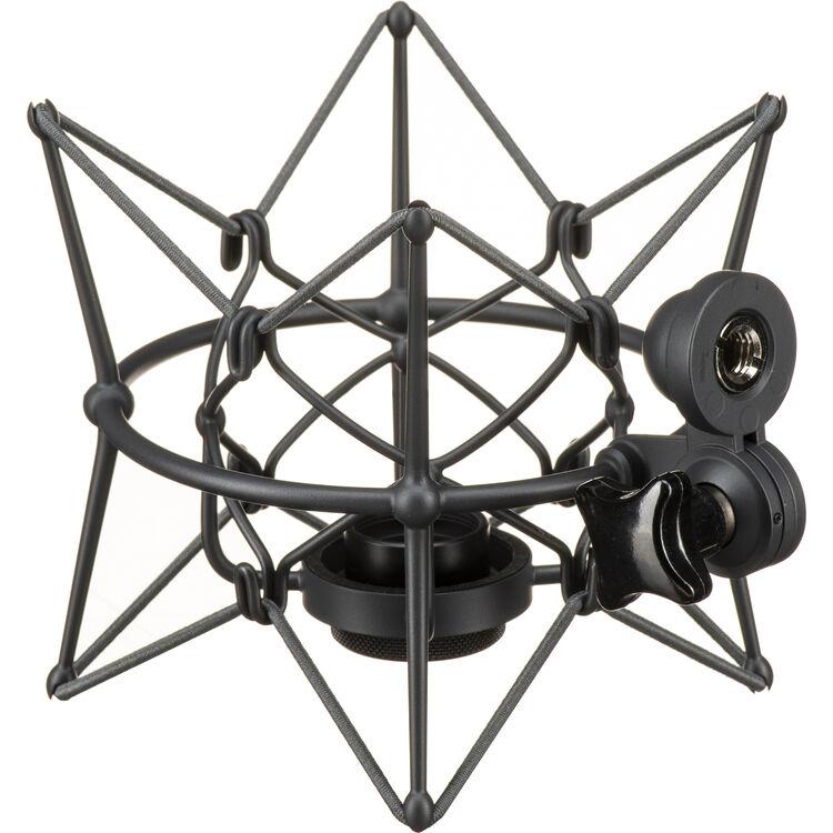 Color-matched for visual consistency with Neumann finishes, the black Neumann EA 87 MT is a shockmount designed to hold a U 87 or U 87 Ai microphone. The spider-style elastic suspension isolates the mic from vibrations, effectively reducing low-frequency noise from rumble and footfall. The swivel mount enables easy adjustment of the mic's angle while it remains cradled in the suspension. The EA 87 MT is outfitted with a 5/8"-27 female thread that can be fastened to most mic stands. The included thread adapter allows it to be secured to a 1/2 or 3/8" stud.