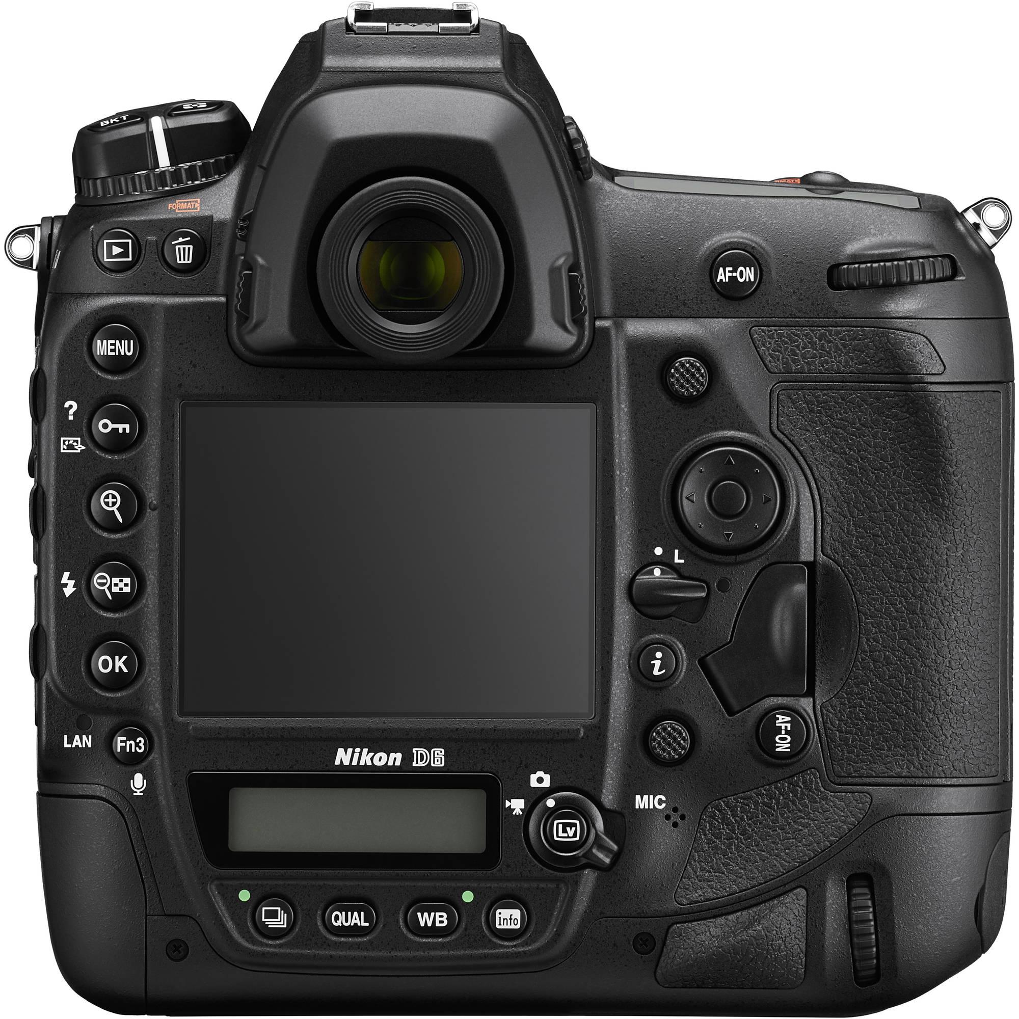 As Nikon's flagship DSLR, the D6 is, of course, a tough camera, too. Its magnesium alloy construction pairs with extensive weather sealing to resist dust and moisture, and a reinforced shutter mechanism has been tested for 400,000 shutter cycles. For viewing, there is a large pentaprism optical viewfinder with 0.72x-magnification as well as a rear 3.2" 2.36m-dot touchscreen LCD. Additionally, the body design incorporates dual CFexpress Type B memory card slots, which offer flexible file saving capabilities, and internal Wi-Fi and Bluetooth also benefit file saving needs as well as afford remote shooting control. For more robust connectivity, the D6 supports wired and wireless LAN connections, too. And, built-in GPS is featured, as well, for in-camera geotagging applications. In familiar form, too, the D6 also has a variety of configurable Function buttons across the body and an integrated vertical grip supports working in both horizontal and vertical shooting orientations.