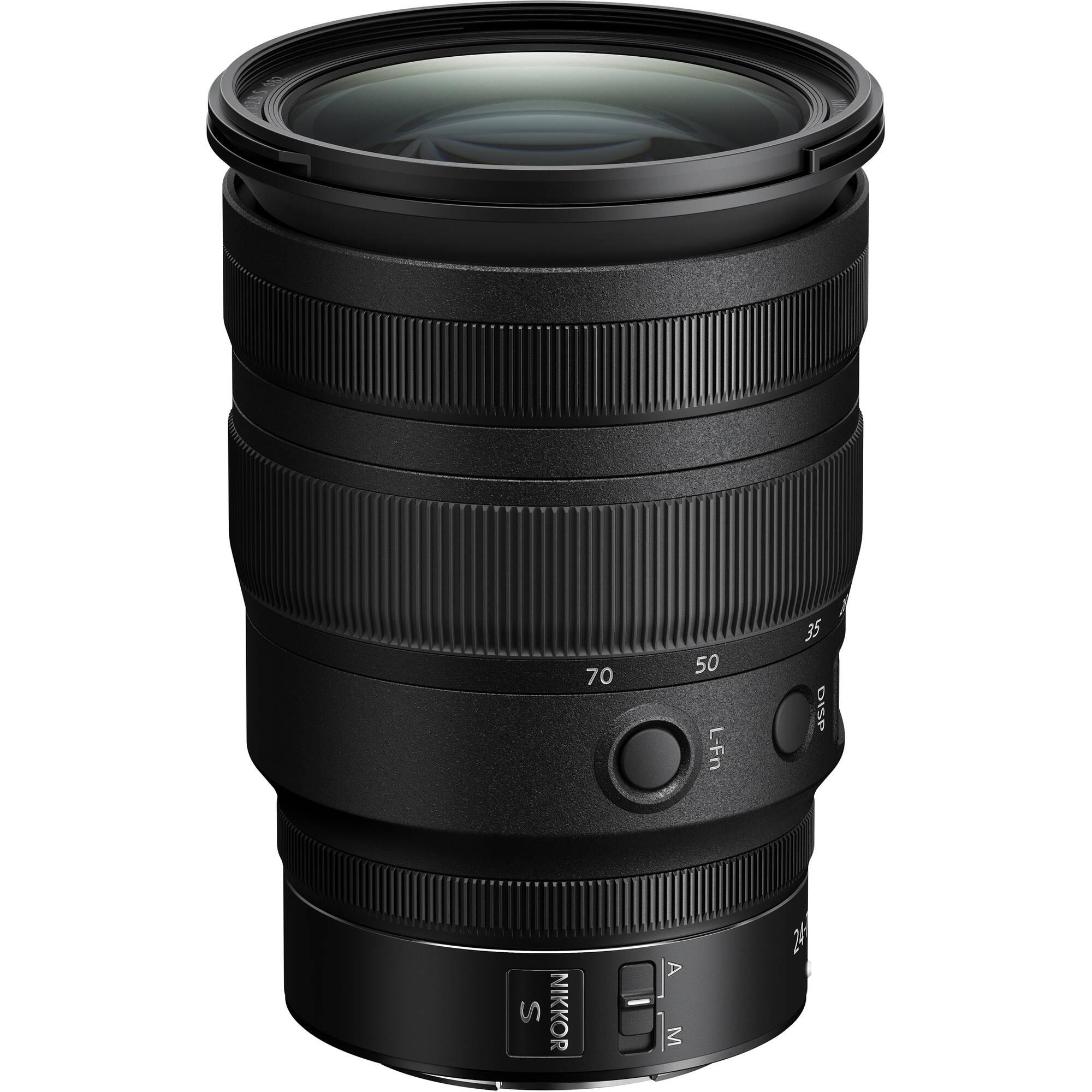Bright and versatile, the NIKKOR Z 24-70mm f/2.8 S from Nikon is a workhorse standard zoom, covering wide-angle to portrait-length fields of view. Characterized by its bright f/2.8 constant maximum aperture, this lens is suitable for working in a variety of lighting conditions and also offers increased control over depth of field for isolating subjects and working with selective focus. The optical design incorporates a pair of extra-low dispersion elements along with four aspherical elements, which help to control chromatic and spherical aberrations throughout the zoom range for improved clarity and sharpness. Additionally, ARNEO and Nano Crystal Coats, as well as a Super Integrated Coating, have been applied to suppress flare, ghosting, and surface reflections for improved contrast and color fidelity.