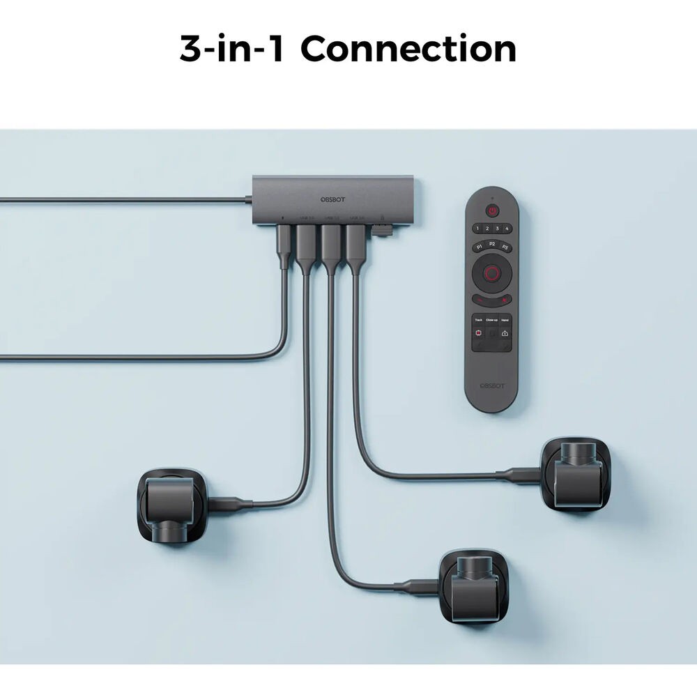 Set up multiple Tiny 2 cameras on one host with this 3-in-1 USB 3.0 Hub from OBSBOT. The hub plugs into your host computer with a built-in 3.3' USB-C 3.0 male cable, and a USB-C to USB-A male adapter is included for hosts with a USB-A port. Its fast interfaces support up to 5 Gb/s data transfer speeds.