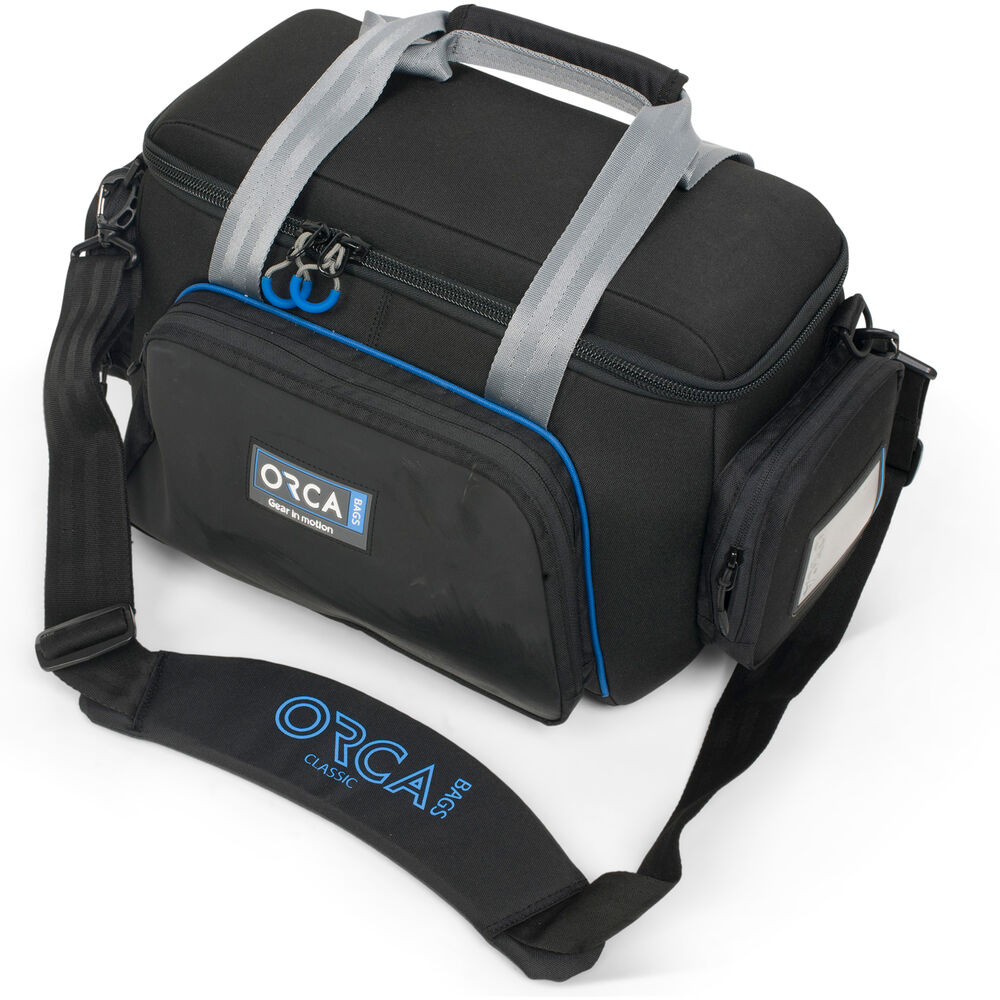 The Classic Shoulder Camera Bag XS from ORCA is a compact over-the-shoulder carry bag designed for smaller cameras and camcorders. It fits all Sony alpha series cameras, such as the a7S, a7R, and a9, along with batteries, cables, and other key accessories. Supported camcorders include the Sony NX80, Panasonic X2000, JVC HM170, and all similarly-sized models.