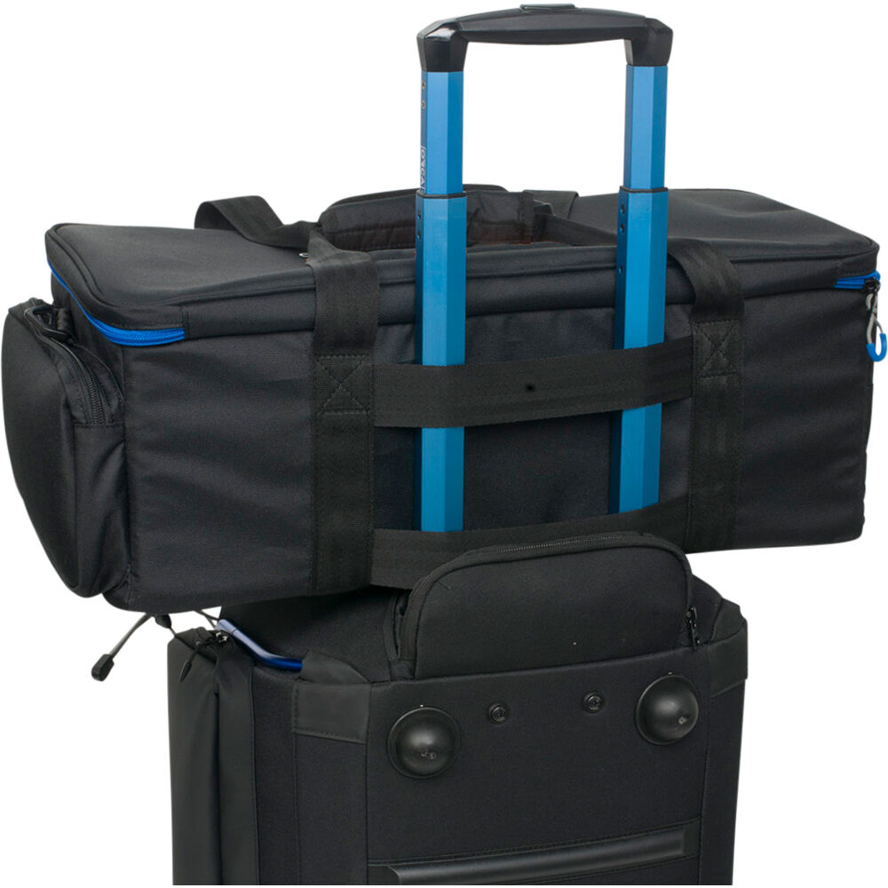 On the rear of the case, there are two straps for securing the bag to a trolley handle. Select ORCA camera bags, such as the OR-510, include an integrated trolley handle, so this classic accessories case can be used as a complement to such a camera bag, to hold the accessories you need for your production.