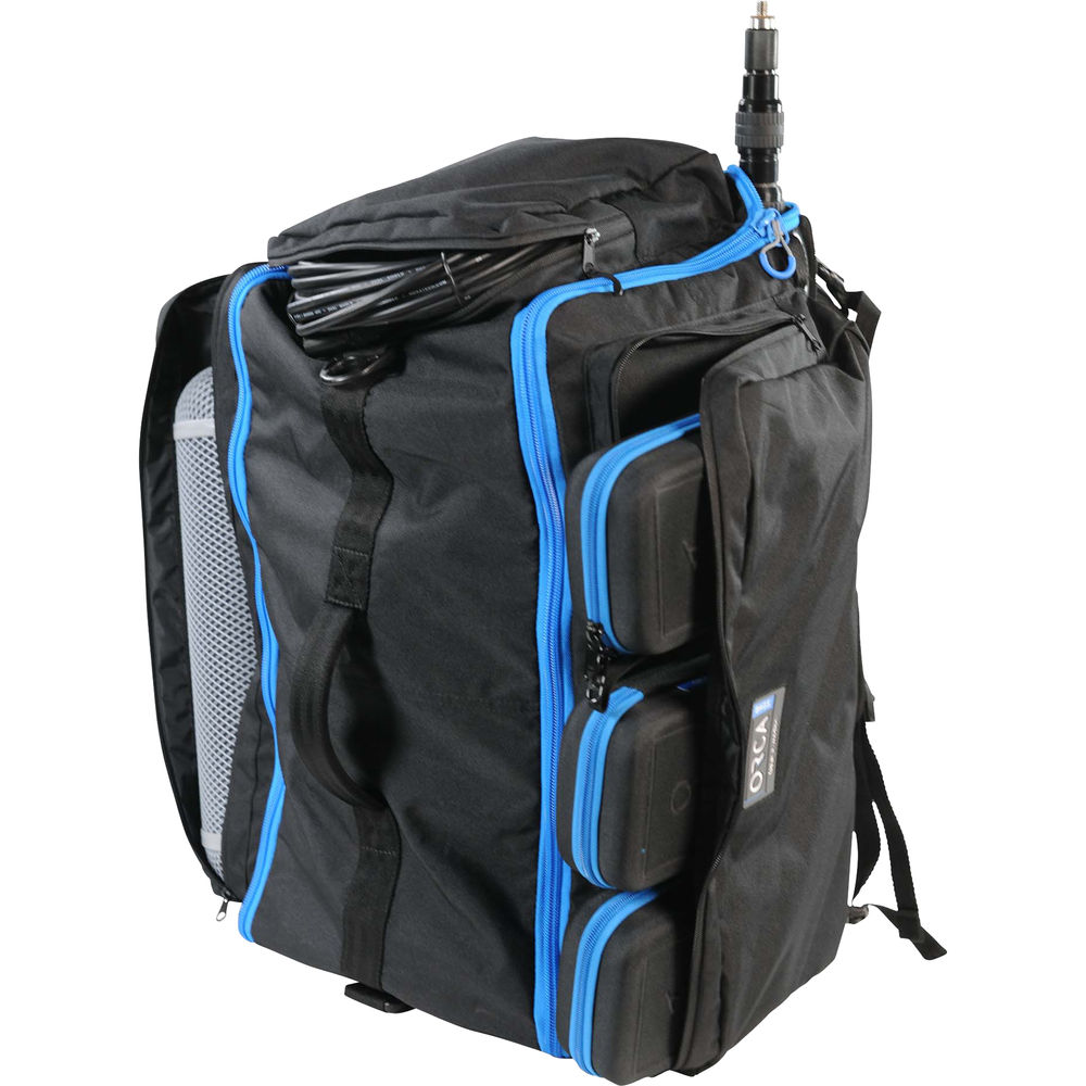 Designed to accommodate any of the Orca audio bags together with a sound zeppelin, cables, a boom pole, wireless systems, and additional accessories, the Orca OR-165 Audio Duffle Backpack is well suited for audio operators wishing to easily transport and protect pro audio gear in the studio or while on location.