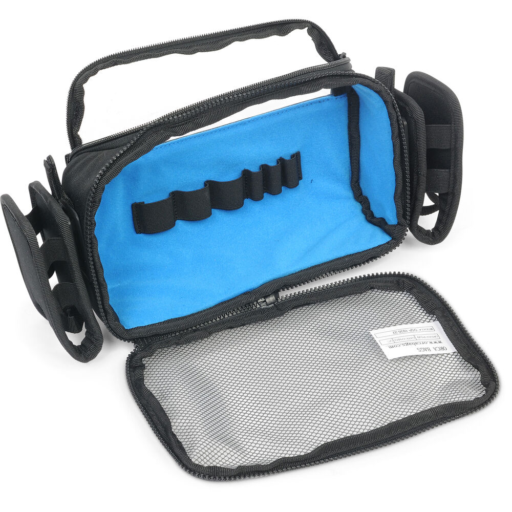 The tough aluminum external frame is lightweight and rugged, and the interior is accessible from multiple angles, allowing you arrange the gear to your liking and get to it quickly on set. In addition to the detachable front pocket that accommodates up to six wireless receivers, two additional detachable pouches allow you to hold more receivers, gear, and accessories. Three internal rubber bands will also hold a wireless receiver. The OR-330 sports two handles as well as a padded shoulder strap for transport.