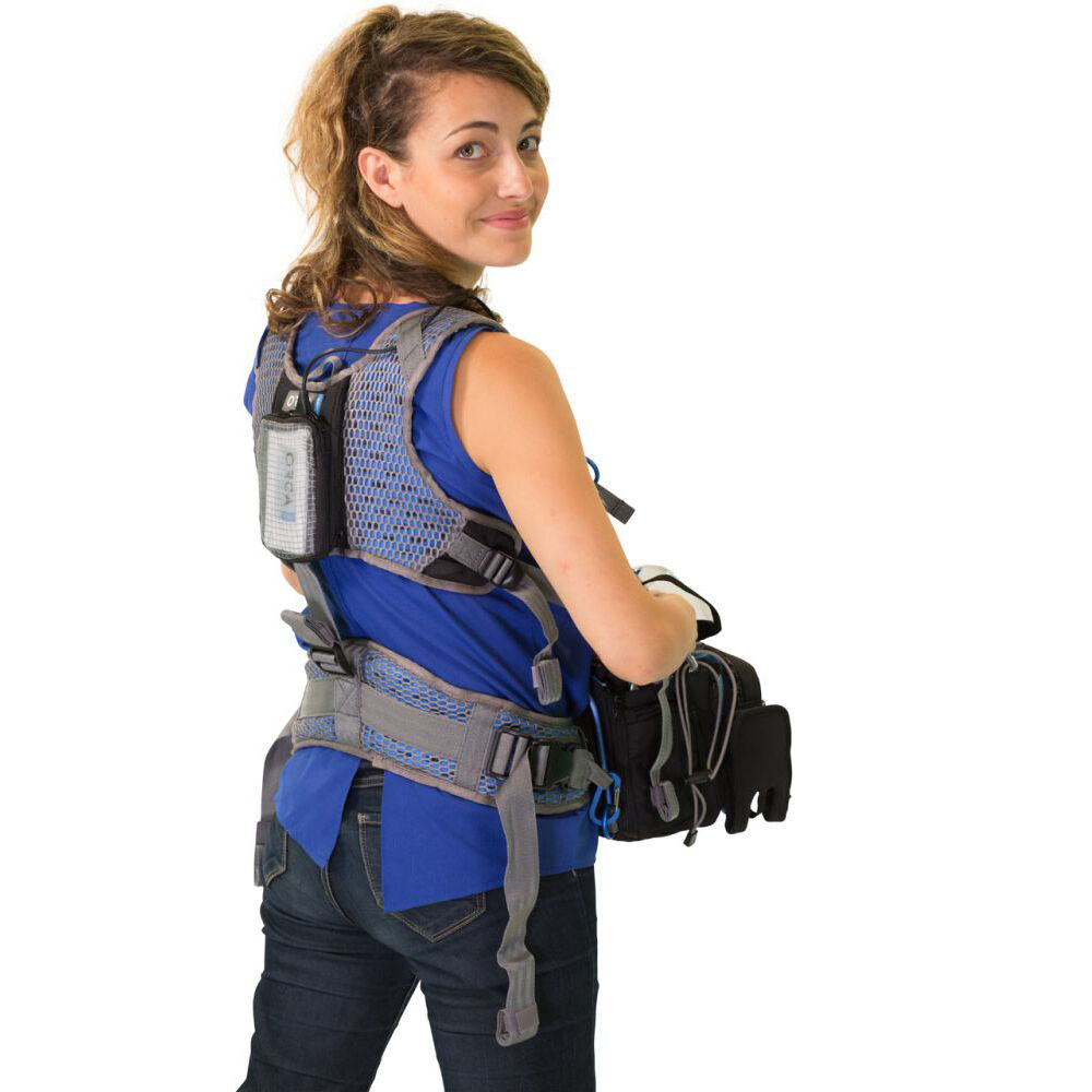 The OR-40 utilizes an EVA skeleton with mesh fabric to ensure light weight and breathability while the padded back increases comfort. A special sliding system adjusts, so the harness can fit any operator of any size. The OR-40 can be attached to any ORCA audio bag and allows separate use of the top and bottom sections.