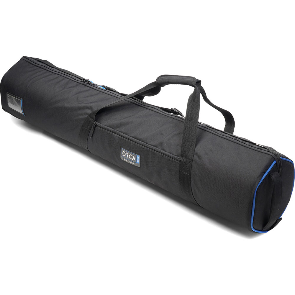 Designed to comfortably carry a tripod or 3-6 light stands up to 37.8" long, the Orca OR-732 Hexagon Soft Tripod/Light Stand Bag features a convenient adjustable shoulder strap. It also has load-balanced straps set toward the end of the bag where your load's center of gravity would be when loaded in to prevent it from pitching forward while carrying it. Its padded interior has two touch-fastener straps to hold your equipment in place and prevent shifting, with extra padding on the rear end offers additional protection when you stand it up. A sturdy YKK zipper runs the length of the bag, making it easy to get your tripod or stands in and out, and there is a pocket on the outside to stow your camera plates. The nylon exterior material is durable and naturally water resistant for even more protection when you're in transit to and from your shoot.