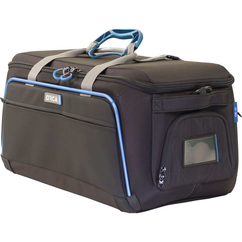 The Shoulder Video Bag OR-12 from ORCA is designed to carry and protect a video camera up to 20.4" in length and its related items. The bag features an external aluminum frame, internal honeycomb frame, and layers of foam and EVA padding. The bag has four external pockets, a padded shoulder strap, two side handles, and a flexible internal dividing system that can be reconfigured depending on your needs. This bag is compatible with the Orca Trolley System for easy transportation.