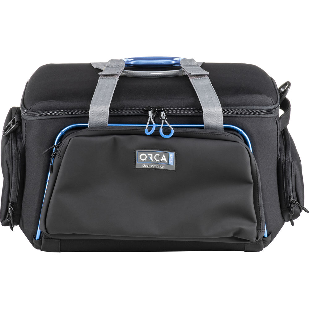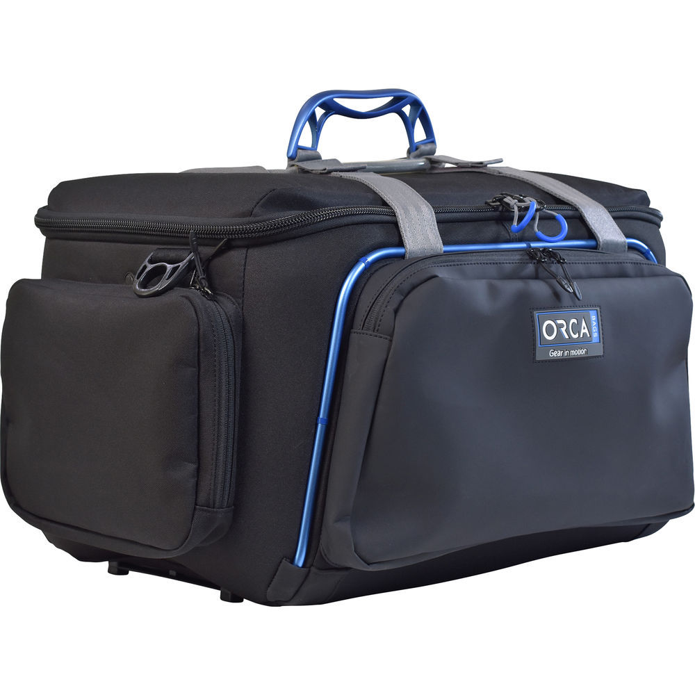 The Shoulder Video Bag OR-13 from ORCA is designed to carry and protect a video camera up to 18.5" in length and its related items. The bag features an external aluminum frame, internal honeycomb frame, and layers of foam and EVA padding. The bag has four external pockets, a padded shoulder strap, two side handles, and a flexible internal dividing system that can be reconfigured depending on your needs. This bag is compatible with the Orca Trolley System for easy transportation.