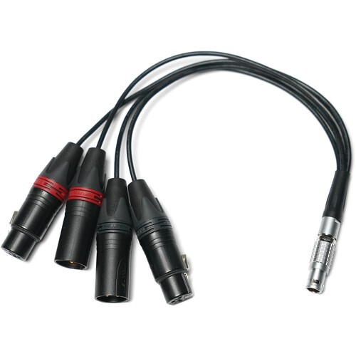 Connect multiple audio inputs and outputs to your Koko monitor with the OVIDE Audio I/O 3-Pin XLR Breakout Cable. The cable inserts into your monitor via a 10-pin LEMO connector. Its Y-shaped design splits into two 3-pin XLR inputs and two 3-pin XLR outputs to connect compatible audio devices. The cable measures 7.9" long for efficient cable runs.