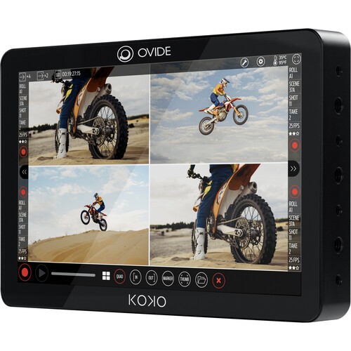 Packed with integrated video assist functions such as Rec-Stop-Play in/out, histogram, waveform, focus assist, zebra, false color, and more, the Koko supports automatic metadata reading and recording. This is very helpful in digital cinema production, where editors and other collaborators rely heavily on this pivotal information for a proper and comprehensive post-production workflow. The Koko is fully compatible with all OVIDE systems, and it is equipped with a bidirectional analog audio input/output and a 3.5mm TRS headphone output. A LAN Ethernet port and a USB-C port are integrated on the rear of the panel, but these are intended for future expanded functionality, and a sun hood is also included in the package.