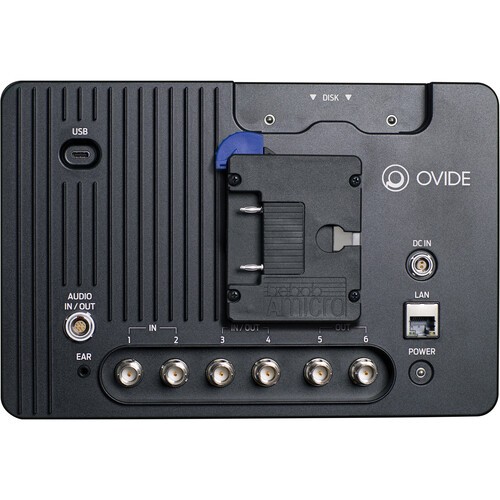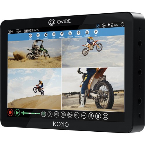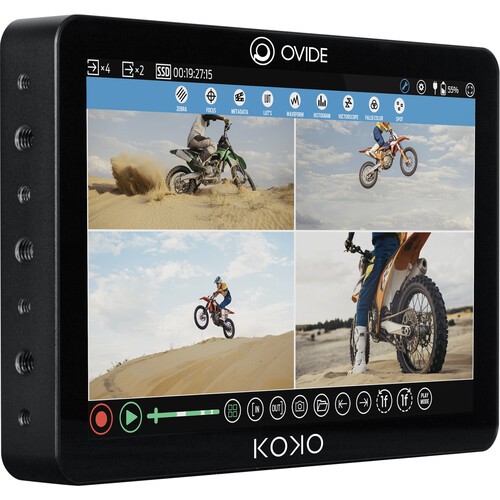 Packed with integrated video assist functions such as Rec-Stop-Play in/out, histogram, waveform, focus assist, zebra, false color, and more, the Koko supports automatic metadata reading and recording. This is very helpful in digital cinema production, where editors and other collaborators rely heavily on this pivotal information for a proper and comprehensive post-production workflow. The Koko is fully compatible with all OVIDE systems, and it is equipped with a bidirectional analog audio input/output and a 3.5mm TRS headphone output. A LAN Ethernet port and a USB-C port are integrated on the rear of the panel, but these are intended for future expanded functionality, and a sun hood is also included in the package.