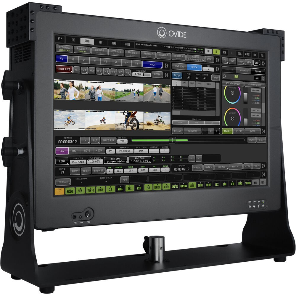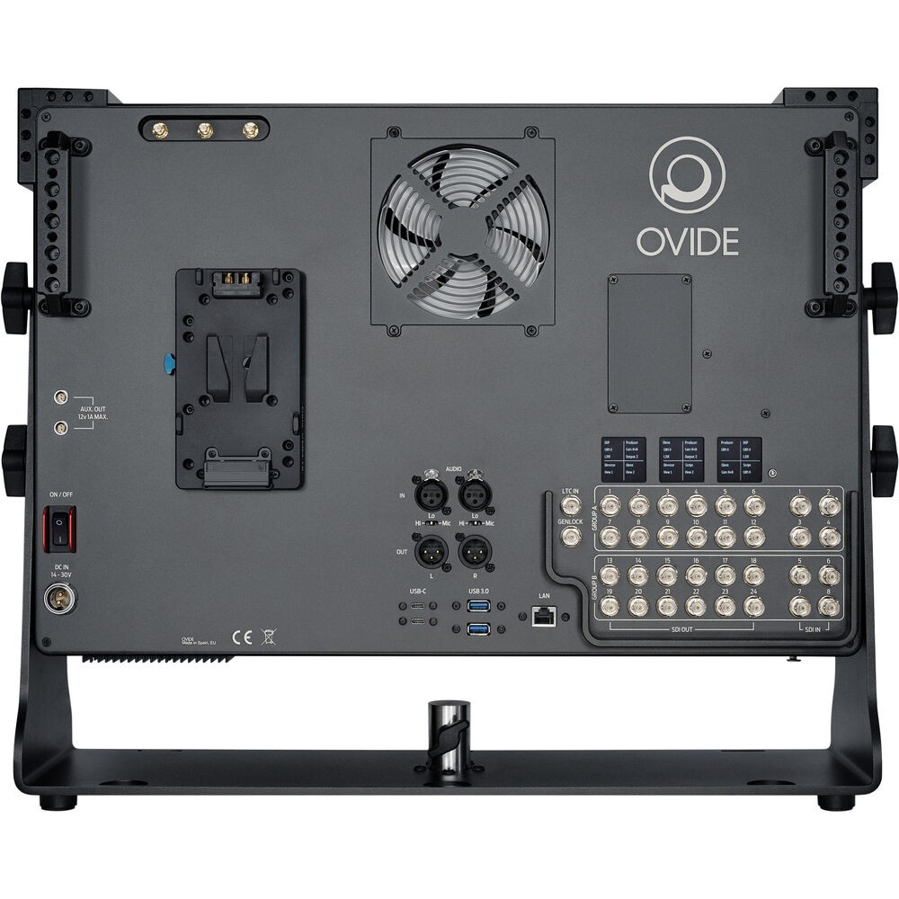 The Smart Assist M200 Octo from OVIDE is a versatile 22" monitor with a capacitive touchscreen display. Boasting 500 cd/m² brightness and DCI 4K screen resolution, the M200 offers eight SDI inputs and 24 SDI outputs for video and two 3-pin XLR inputs and two outputs for analog audio. Two removable 2TB drives are included with the monitor.