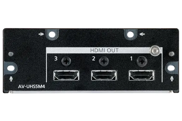 The AV-UHSM4G HDMI 2.0 Output expansion card adds 3 HDMI 2.0 outputs for HD or 4K video output to your AV-UHS500 live production professional video switcher. One or two of these upgrade cards can be installed in the AV-UHS500 video switcher.