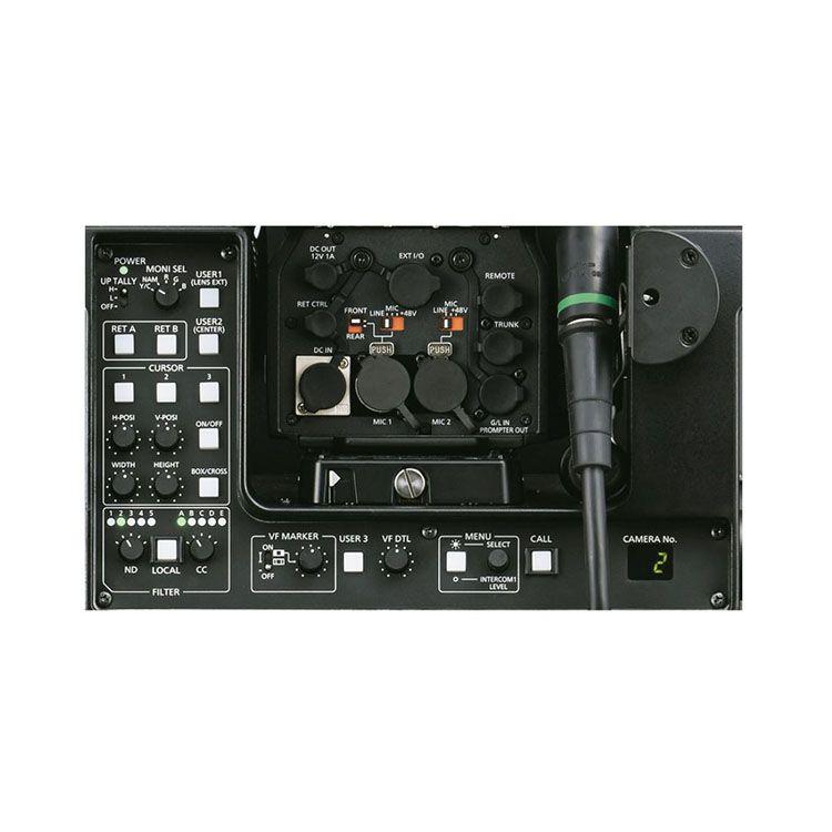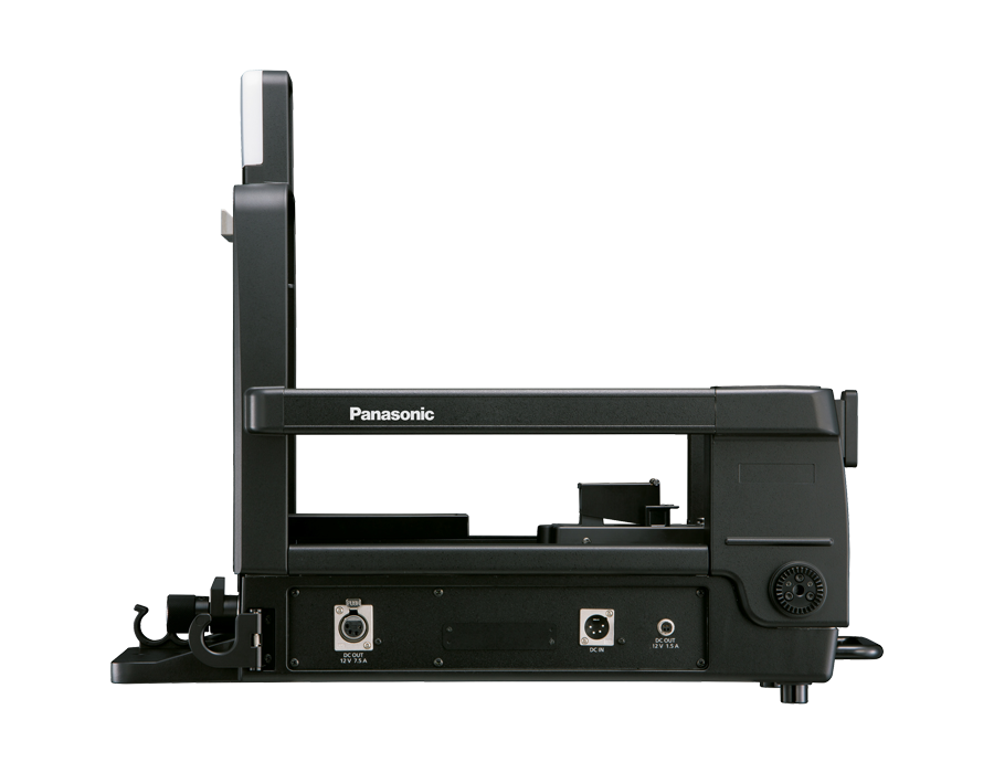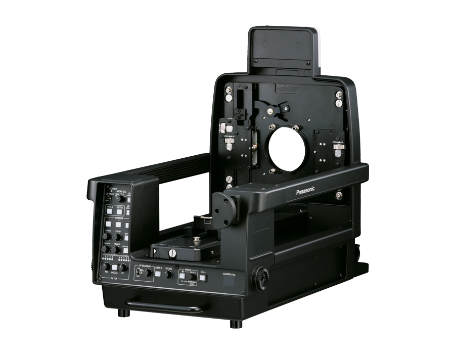 This large lens build-up unit makes it possible for camera operators to use of large studio-use lenses on the Panasonic AK-UC3000 and AK-HC5000 studio cameras.