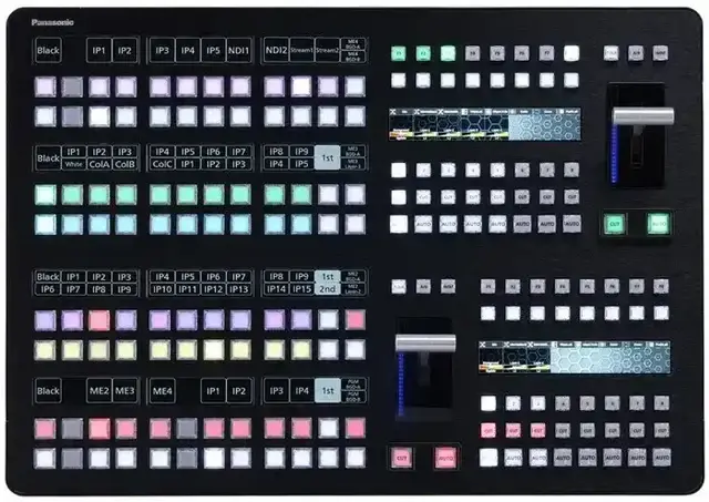 The Panasonic KAIROS AT-KC10C2G is a compact control switcher panel designed to streamline live video production by allowing operation of up to two KAIROS Core mainframes from a single interface. This versatile panel enables users to assign buttons to control sources and materials from both cores, simplifying management during large events requiring multiple video feeds. Featuring a flexible layout with freely assignable functions and clear indicators for each button, the panel supports multi-scene operations with two ME layouts and two faders. Its transition fader supports both A/B and PGM/PST modes, providing familiar and intuitive control for seamless live production. Multiple panels can also be integrated into one system for expanded control.