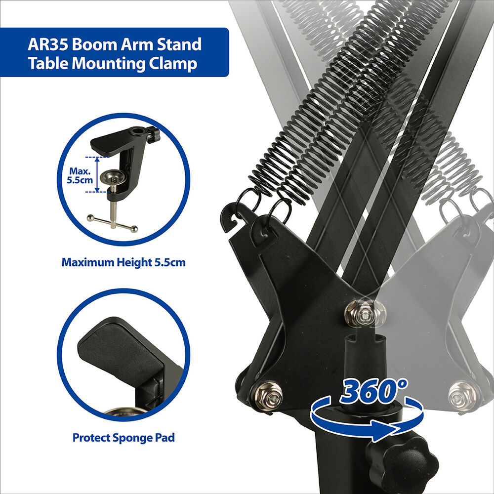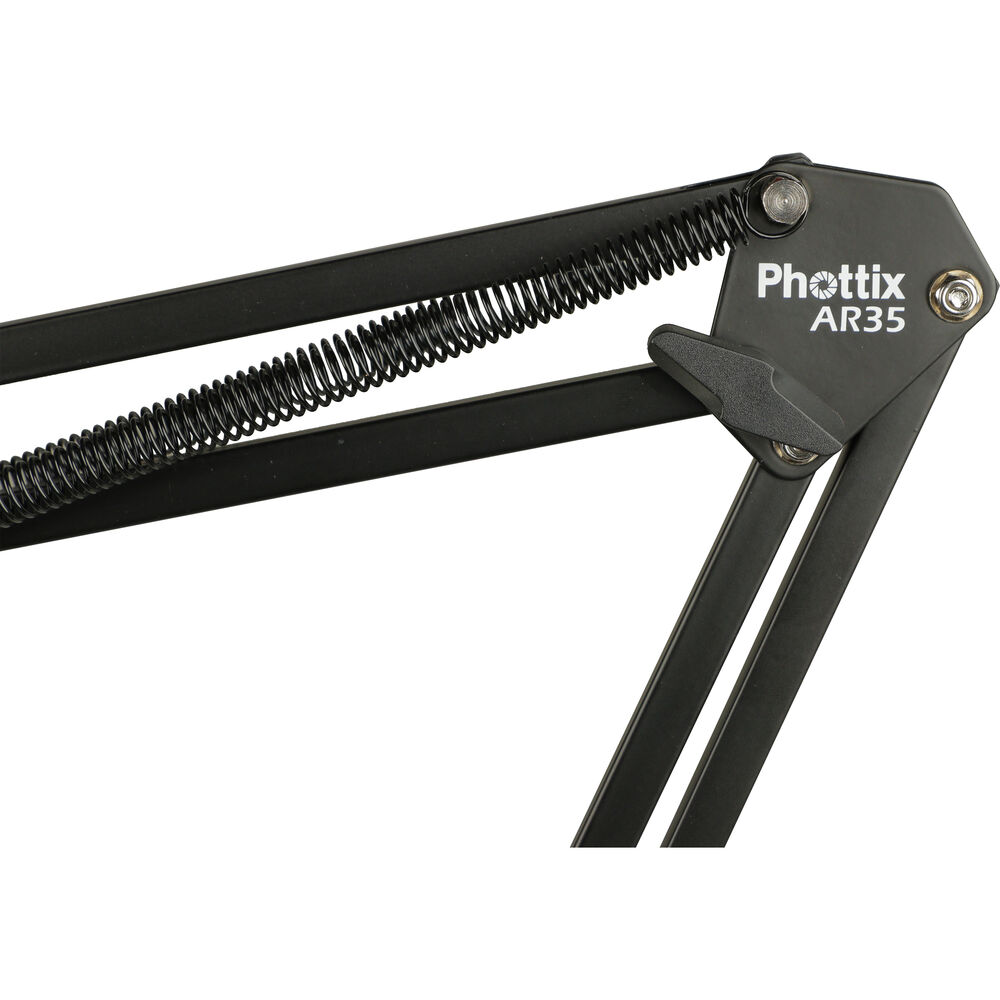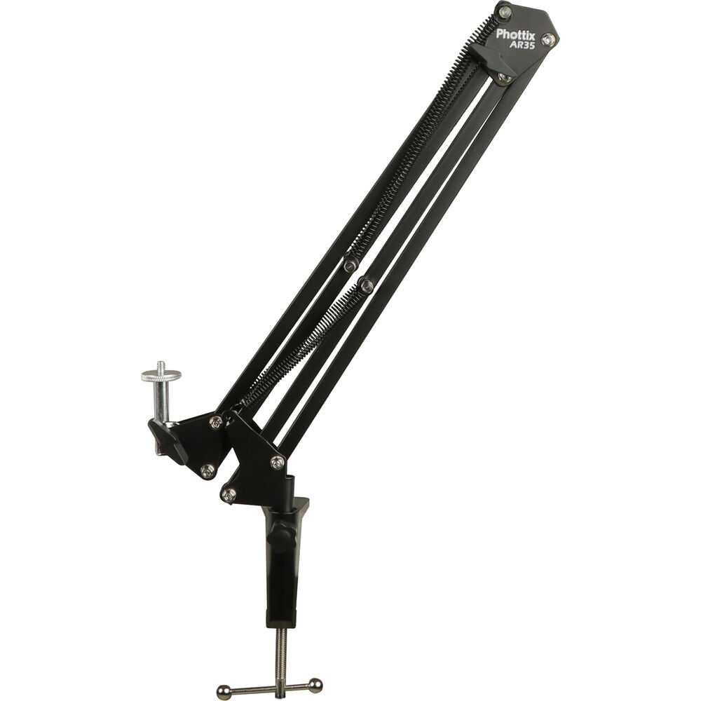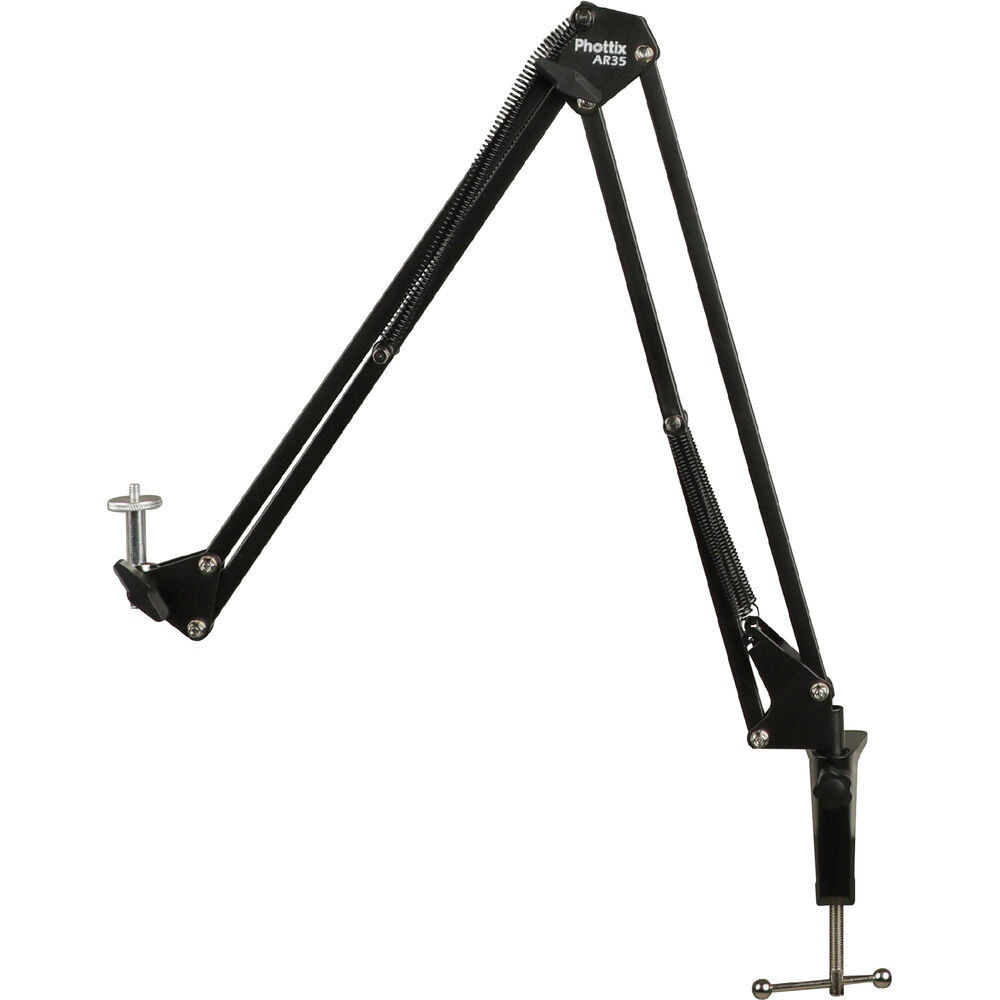 Ideal for voiceover recording, ASMR production, or even mounting small LED lights, the Phottix AR35 is a boom arm stand that attaches to your desk thanks to its mounting clamp, and allows for easy height and angle adjustments during your production. The boom, which is fashioned out of heavy-duty steel, sports a maximum reach of 32.7", and anything mounted to its 1/4" threaded screw can be rotated up to 180°.