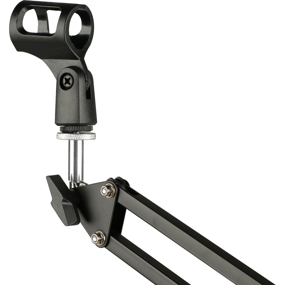 This boom arm is compatible with most camera mounts and shockmounts, and can support such devices up to 2.2 lb. A mic clip holder, fashioned out of ABS, is included, as is the table mounting clamp. A 1/4" to 3/8" screw and a 3/8" to 5/8" screw are also included to bolster compatibility with mics, cameras, and more.