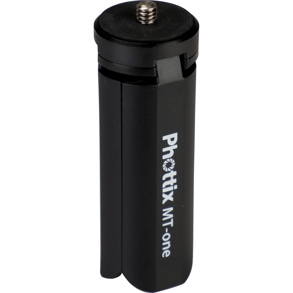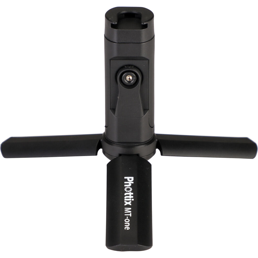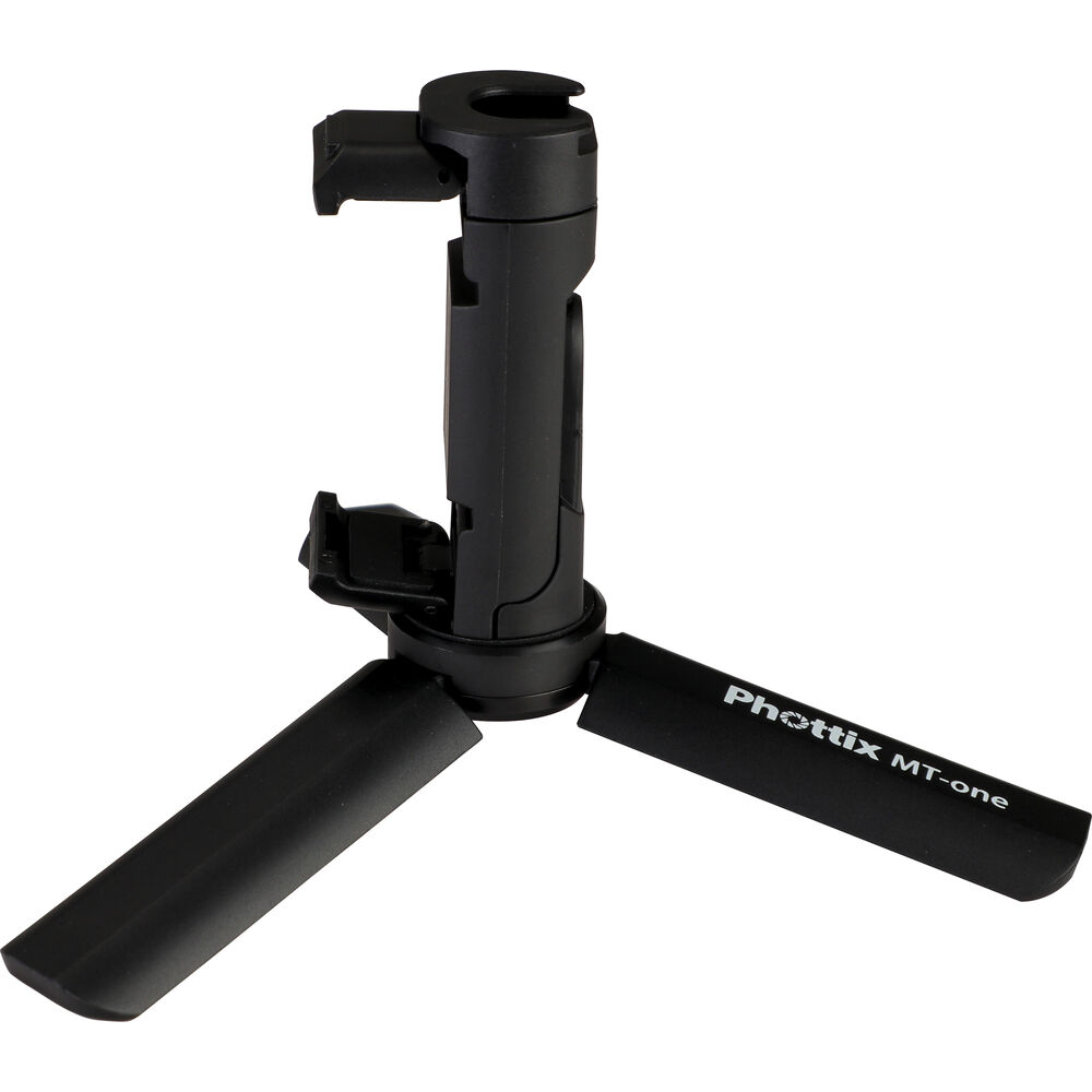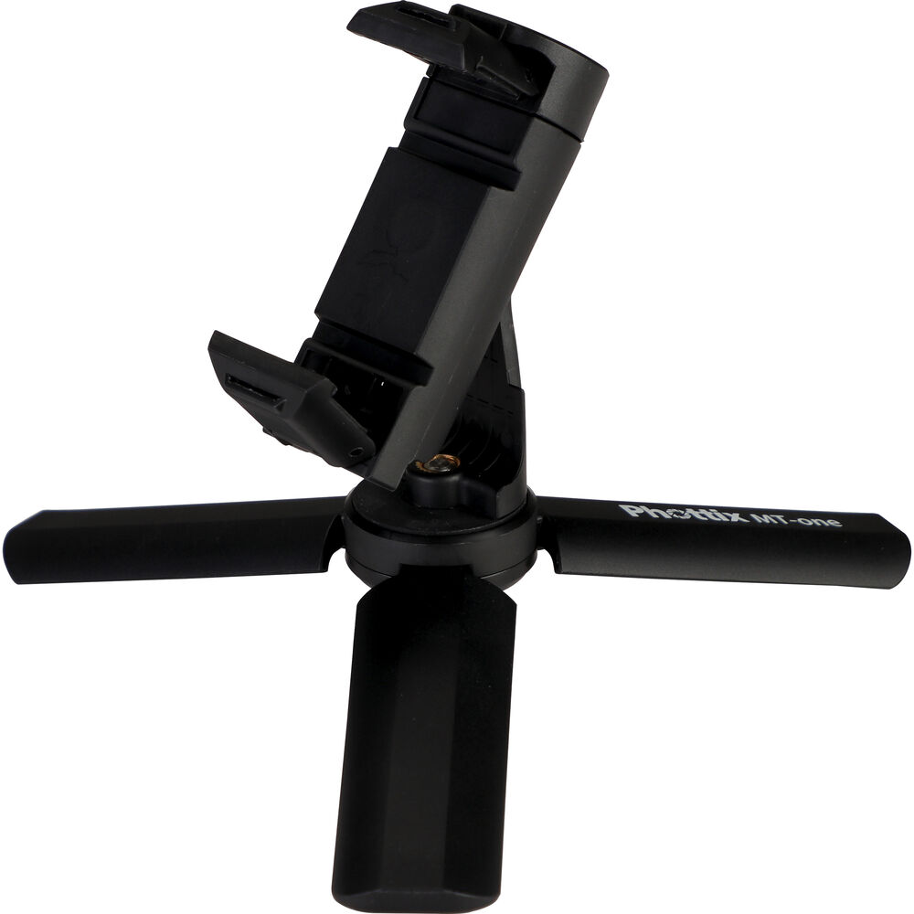 Take stable photos and creative videos with the MT-One Mini Smartphone Tripod Kit from Phottix. This compact tripod features three fold-out legs that can lay flat, giving you a stable platform for macro shooting, video calls, and more. The top portion of the tripod is a tilting smartphone holder that can rotate a full 360°, offering you portrait and landscape orientations, and everything in between. Close the legs of the tripod and you now have a hand grip that's ideal for selfies, vlogging, and livestreams. Remove the smartphone holder from the threaded mount and you can utilize the tripod/hand grip with compatible compact digital cameras.