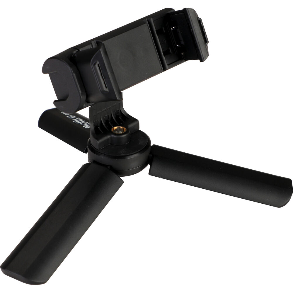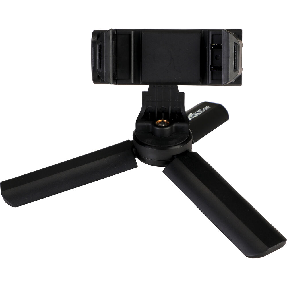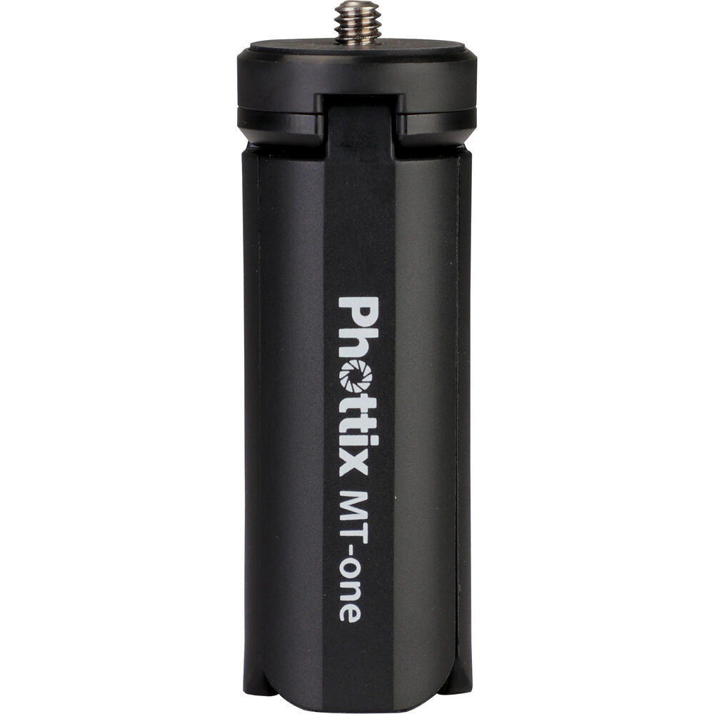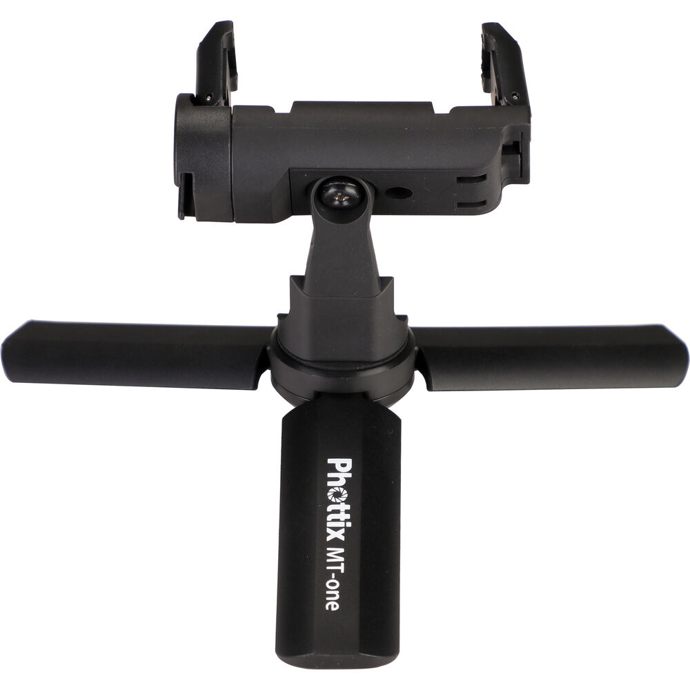 Take stable photos and creative videos with the MT-One Mini Smartphone Tripod Kit from Phottix. This compact tripod features three fold-out legs that can lay flat, giving you a stable platform for macro shooting, video calls, and more. The top portion of the tripod is a tilting smartphone holder that can rotate a full 360°, offering you portrait and landscape orientations, and everything in between. Close the legs of the tripod and you now have a hand grip that's ideal for selfies, vlogging, and livestreams. Remove the smartphone holder from the threaded mount and you can utilize the tripod/hand grip with compatible compact digital cameras.