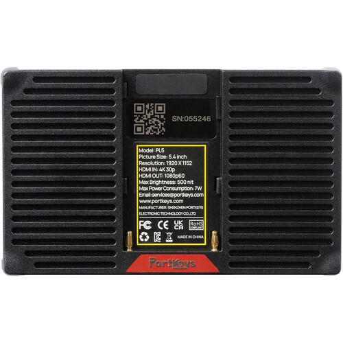 Monitor your camera feed and display the image on a monitor, projector, or even live stream with the PL5 5.4" 4K HDMI/USB Monitor from PORTKEYS. This compact, 5.4" touchscreen monitor offers a bright 500 cd/m² on-camera display and live streaming. Other features include 3D LUT input via a USB-A 2.0 port, a quiet cooling fan, an integrated L-series battery plate, mic input, headphone output, and numerous built-in imaging tools.