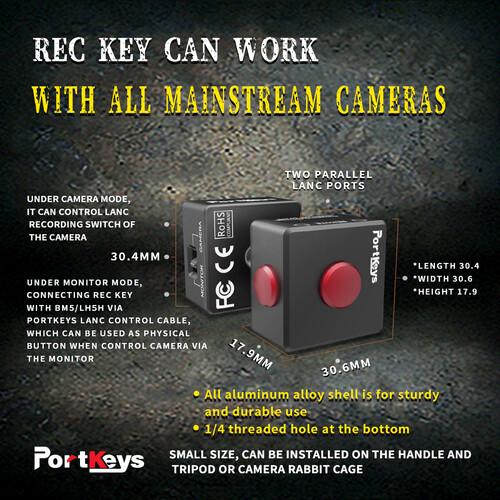The REC KEY LANC Controller from PORTKEYS offers a handy, discrete run/stop button for almost any mainstream video camera. Ideal for inaccessible or delicate camera positions, the REC KEY enables you to operate your camera without physical contact. This compact controller has two parallel LANC ports that enable you to control a variety of cameras either directly via a LANC input or via a PORTKEYS BM5 or LH5H monitor and Bluetooth or other wireless control mode.