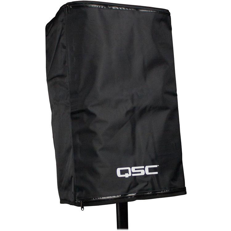 The QSC K8 Outdoor Cover (Black) is a nylon and mesh cover for outdoor use. It provides temporary protection in adverse weather. It has a removable amplifier panel that allows access to connectors and controls. A vented panel maintains airflow for proper heat management.