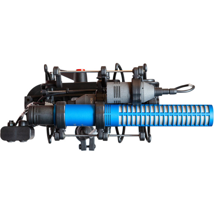The Rycote Stereo Cyclone DMS Kit 2 is a windshield system offering acoustically transparent protection for location sound mixers and recordists using a double mid-side array of Schoeps MiniCMIT, CCM 8, and CCM 4 microphones in broadcast TV, film, video, and game audio production. It features an enhanced Connbox design with no straight or parallel surfaces to reduce room tone and resonance. Its Lyre mic suspension and Floating Basket Suspension improve vibration isolation and minimize handling noise.