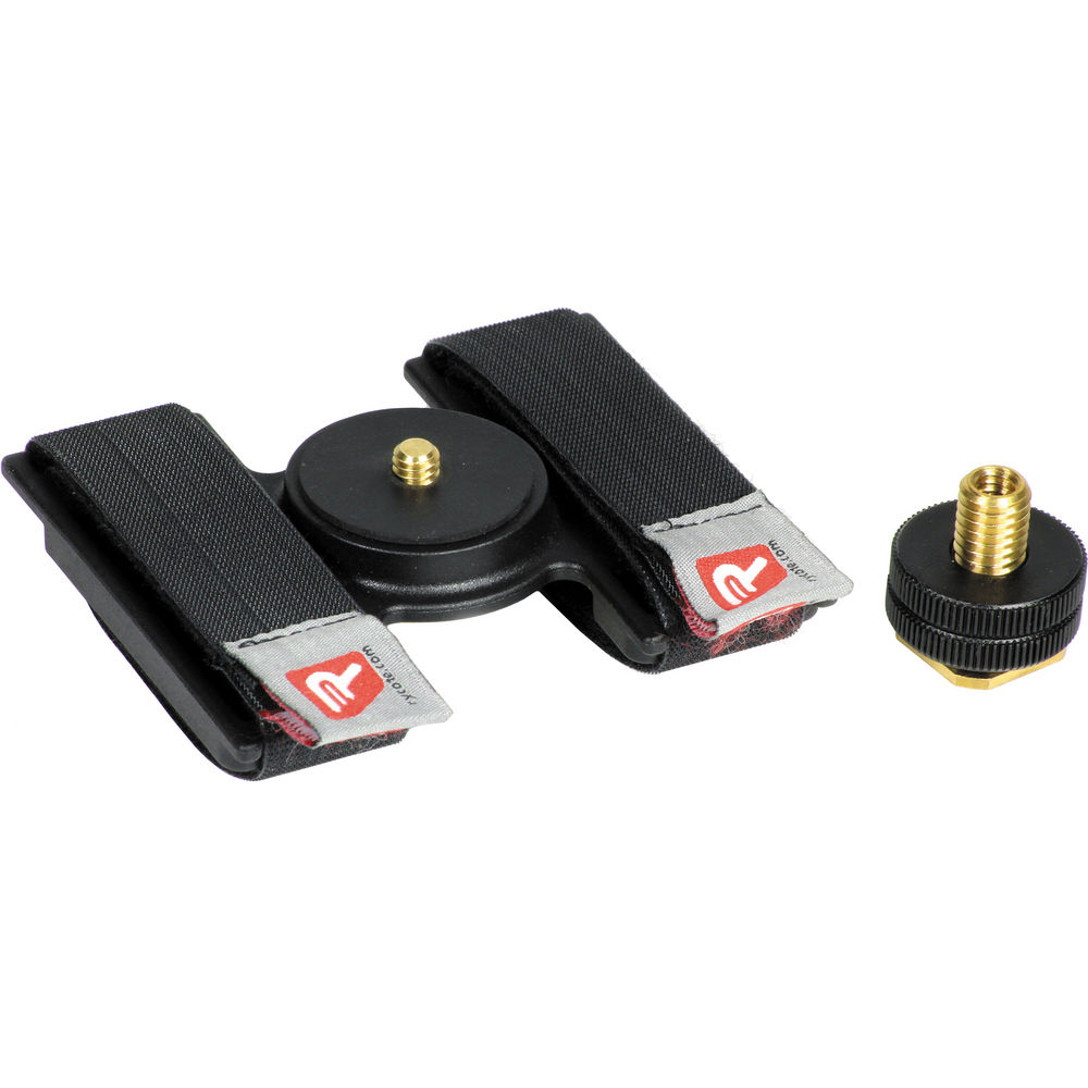 The Rycote Wireless Universal Receiver Camera Bracket MkII is designed for mounting a wireless microphone receiver on the flash shoe of a camera, or on a 1/4" mount. The bracket utilizes a brass thumbwheel to make mounting easier and can accommodate a wide range of different sized wireless receivers. The bracket features four soft grip pads and a hook and loop strap system for securing the receiver to the bracket. The unit comes included with a shoe mount.