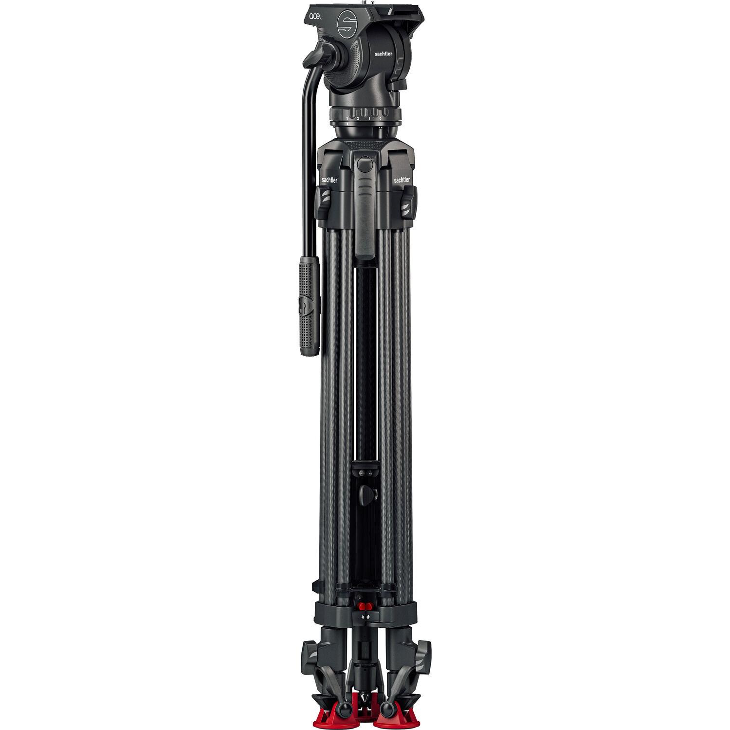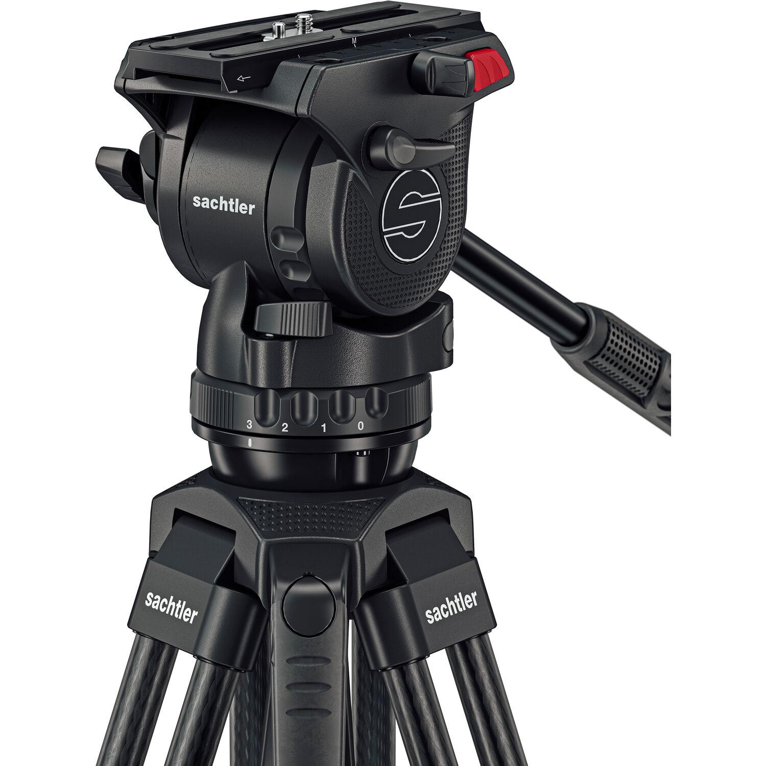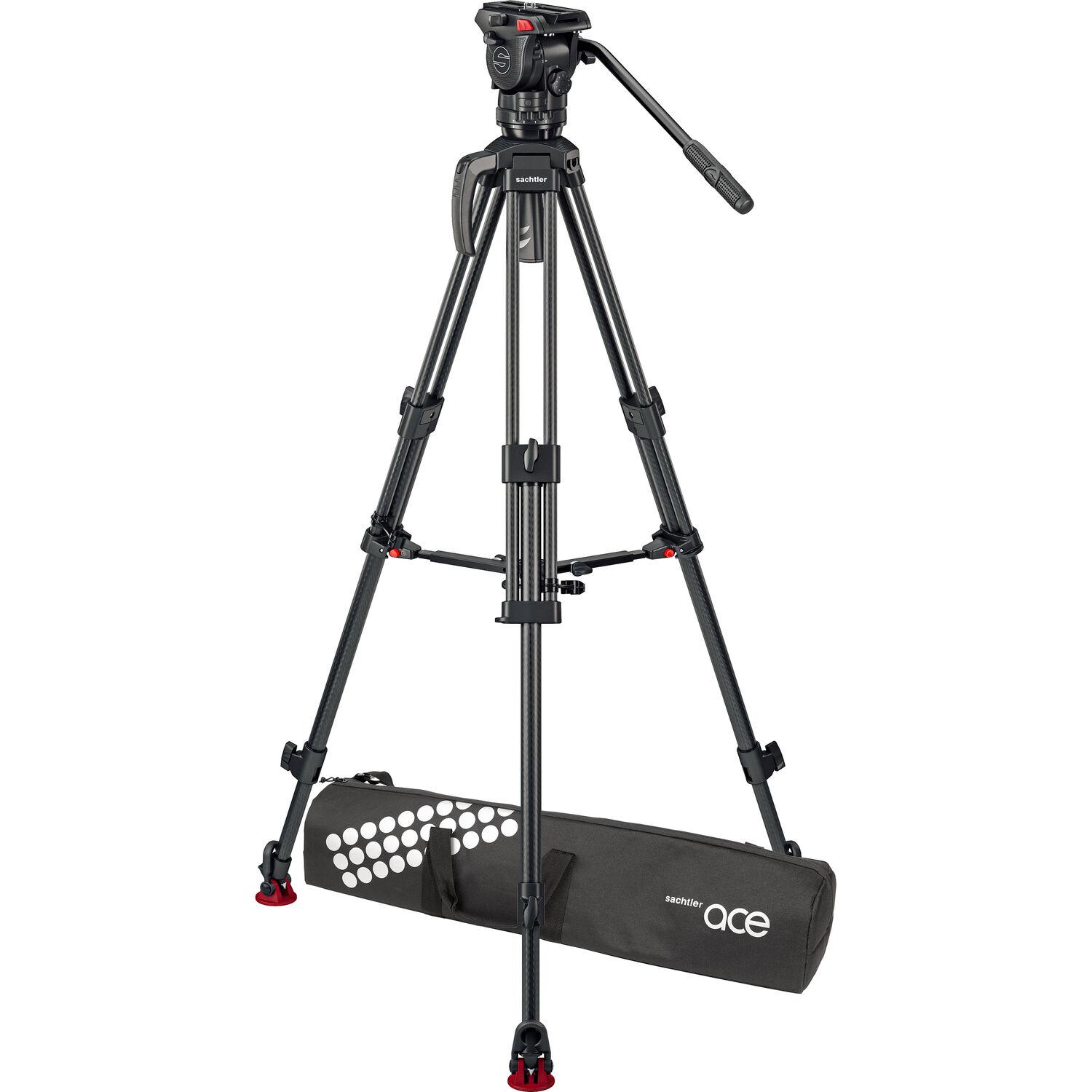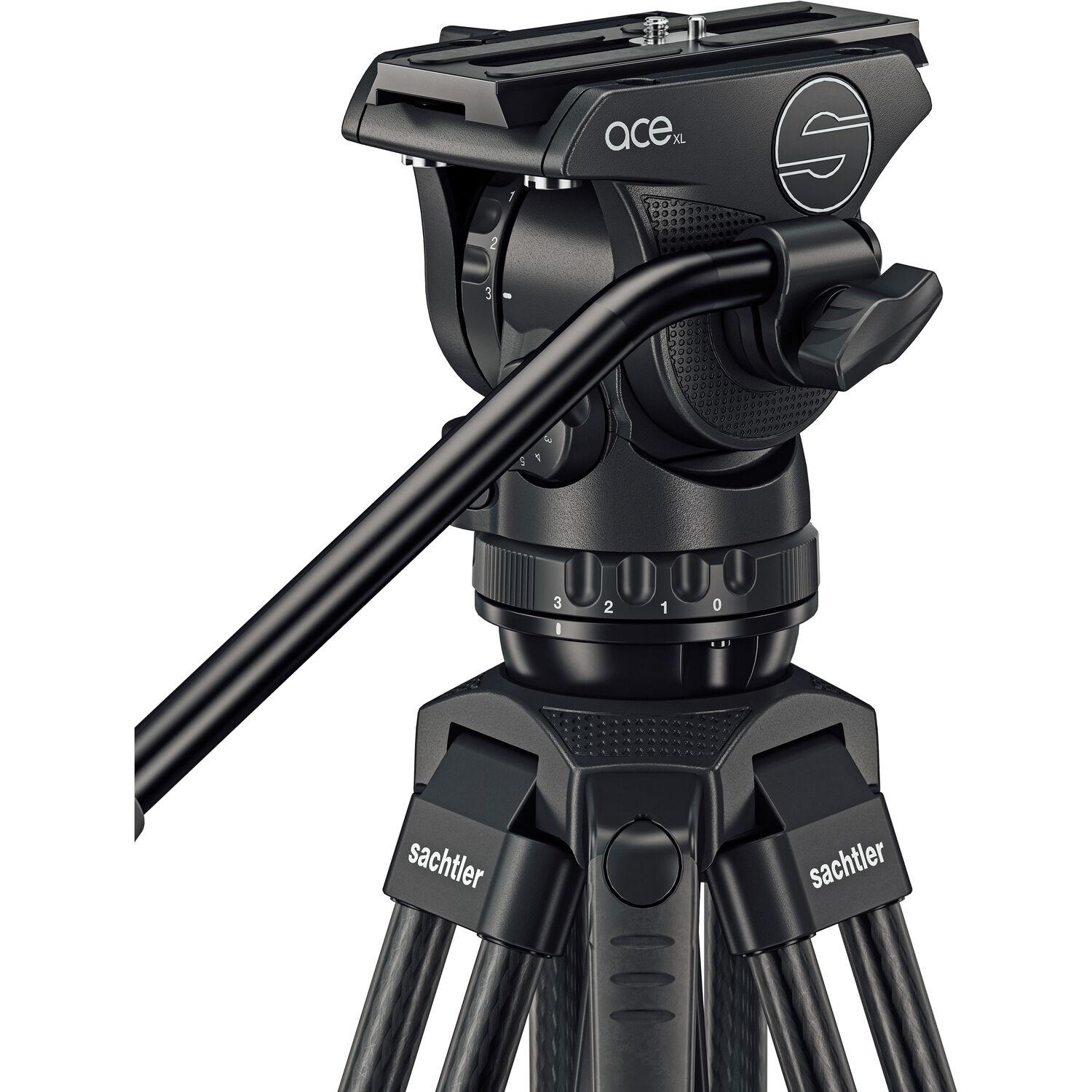 The 75/2 Mark II Carbon Fiber Tripod System with Ace XL Head & Mid-Level Spreader from Sachtler pairs the Ace XL fluid head and the carbon fiber 75/2 tripod legs with a mid-level spreader. This kit offers a 17.6 lb load capacity for midsized camera rigs, as well as a balancing camera plate, 9-step + 0 counterbalance, and 3-step + 0 pan/tilt drag. Carry the system with the included handle and bag for easy transport to the set.