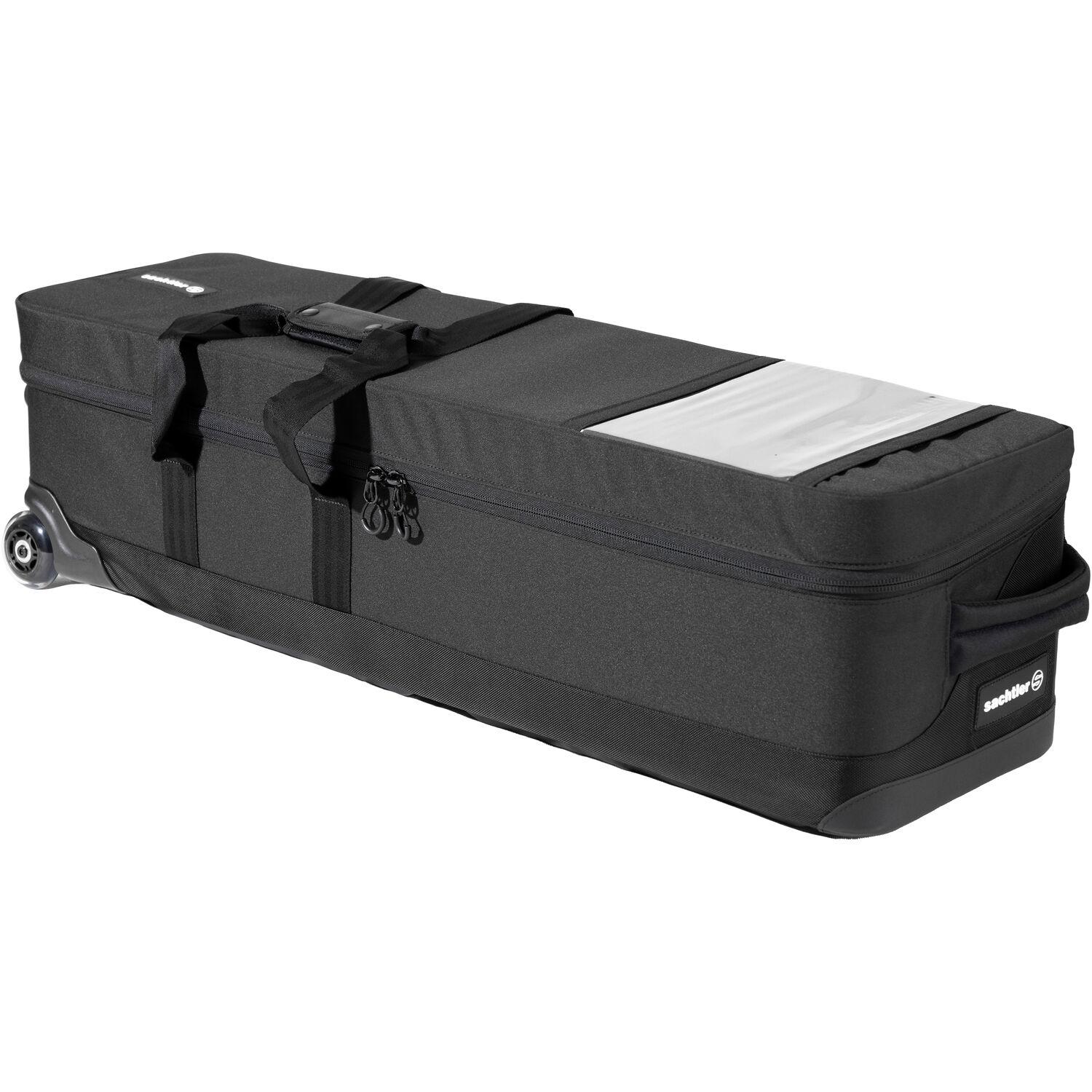 The 9118 EFP Bag with Wheels from Sachtler is a rigid, padded tripod case that is suitable for storing and transporting an EFP tripod with a Video 25 or Cine 30 video head mounted on it. The case has two flush-mounted wheels for easy navigation, even through narrow spaces. It has a hand grip on each end and a hand strap grip set. It features a robust zippered closure.