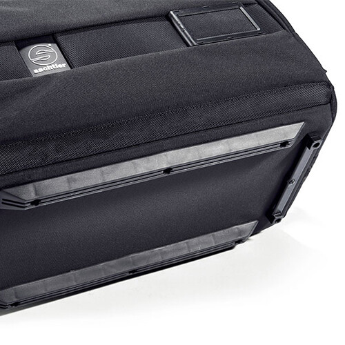 Featuring an extra-wide opening, Sachtler's Dr. Bag - 3 is a standard size bag designed to store and protect a camera with a matte box and microphone attached. It features removable internal rigid dividers for custom configuration, cold-molded laminate panels provide extra protection, and side pockets for additional storage. Additionally, the bag provides internal LED lighting to enable easy viewing of your contents even in dimly lit environments. The bag is carried using the ergonomic handle or included padded shoulder strap, and is also compatible with Sachtler's Snaplock Trolley System.