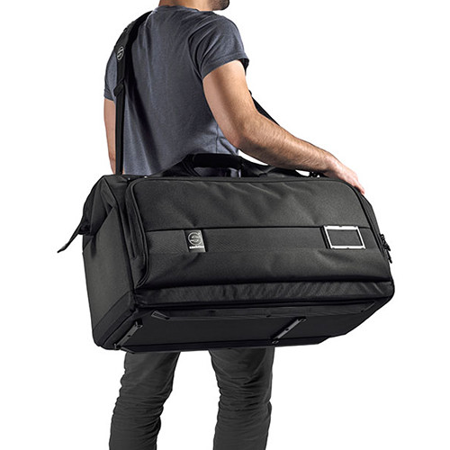 Featuring an extra-wide opening, Sachtler's Dr. Bag - 5 is an extra large bag designed to store and protect a camera with a matte box and microphone attached, along with extra gear. It features removable internal rigid dividers for custom configuration, cold-molded laminate panels provide extra protection, and side pockets for additional storage. Additionally, the bag provides internal LED lighting to enable easy viewing of your contents even in dimly lit environments. The bag is carried using the ergonomic handle or included padded shoulder strap, and is also compatible with Sachtler's Snaplock Trolley System.