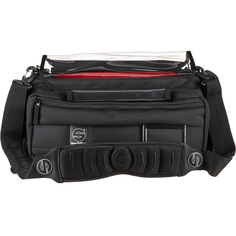 The large version of the Lightweight Audio Bag from Sachtler features a variety of innovative features designed specifically for sound recording engineers in the studio, on set, and in the field. The bag includes a transparent top window that allows for easy viewing of equipment controls within the fully padded main compartment. Access to equipment controls are provided by side, back, and top panels.