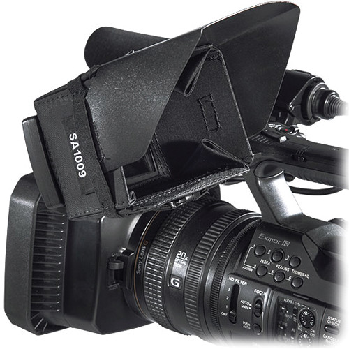 The Sachtler SA1009 Mini Hood is a lightweight solution for shading your 3.5" LCD viewfinder. It fits securely over the LCD, and features a two-piece design. The rigid internal panels help hold its shape, while the padding provides protection should you bump into it. The black binding strap holds the hood securely, and its design allows it to fold flat for storage when not in use.