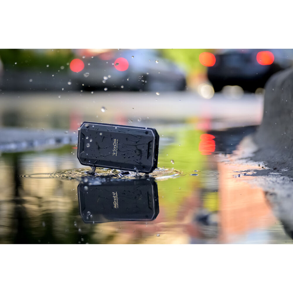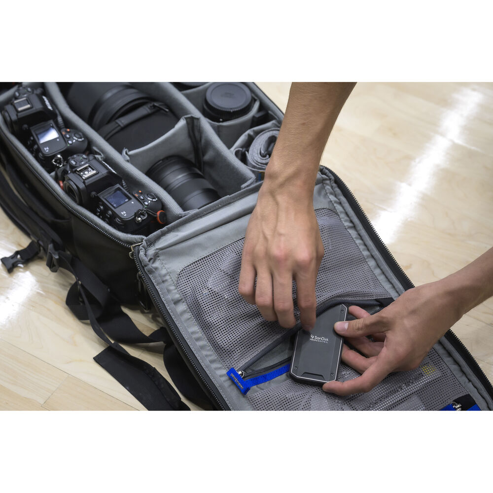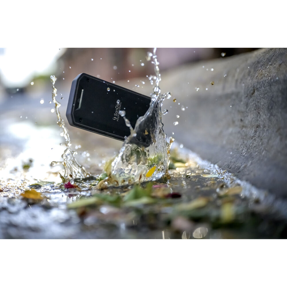 No matter where your adventures may lead, the 2TB SanDisk Professional PRO-G40 SSD helps you store your important footage, including large raw images and 4K video files. Featuring a tough, rugged design, this portable solid-state drive is IP68 rated for water and dust resistance in addition to withstanding up to 9.8' drops and 4000 pounds of crushing force. At the same time, the aluminum core helps to quickly dissipate heat to maintain read speeds of up to 3000 MB/s and write speeds of up to 2500 MB/s when connected to a Thunderbolt 3 compatible system — meaning that you can transfer 50GB of data in about a minute. The PRO-G40 SSD also works with USB-C 3.2 Gen 2 devices at up to 1050 MB/s and 1000 MB/s read and write speeds, respectively, making it an ideal scratch drive for high-resolution editing and rendering.