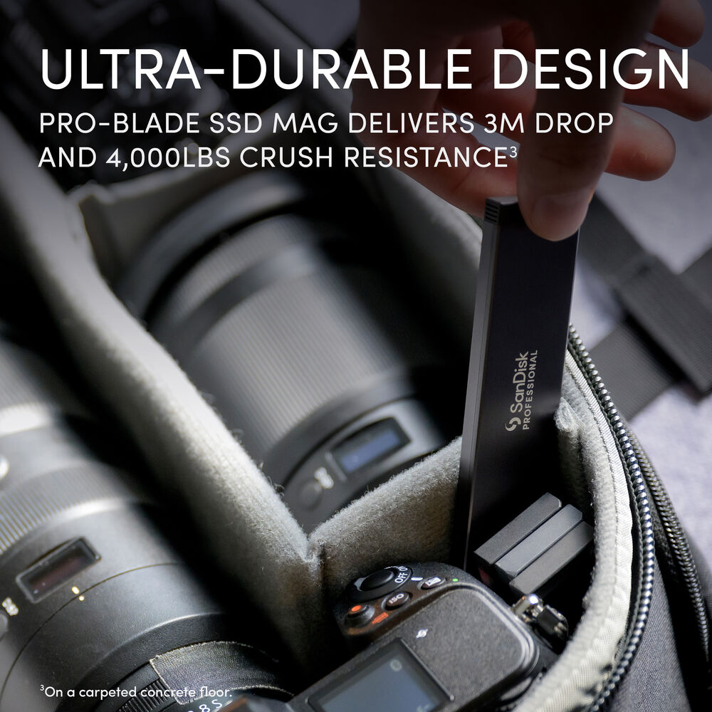 The included PRO-BLADE SSD mag delivers 9.8' of drop protection of 4000 pounds of crush resistance for on-the-go reliability.