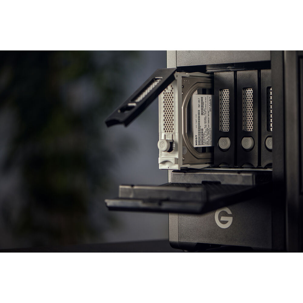 Consolidate storage and streamline your workflow with the G-RAID Shuttle 4 24TB 4-Bay Thunderbolt 3 RAID Array from SanDisk. Utilizing four 3.5" drive bays, this RAID array houses a 6TB 7200 rpm HDD in each bay. Preconfigured in RAID 5, this array also supports RAID 0, 1, and 10 modes. The Thunderbolt 3 interface provides read speeds up to 1000 MB/s and write speeds up to 1100 MB/s, and can also be used with 10 Gb/s USB 3.2 Gen 2. Two Thunderbolt 3 ports can be used to daisy chain up to five devices and support up to 85W of power delivery. The SanDisk G-RAID Shuttle 4 comes pre-formatted for macOS 10.15 and later but may be used with Windows 10 and later via a simple reformat.