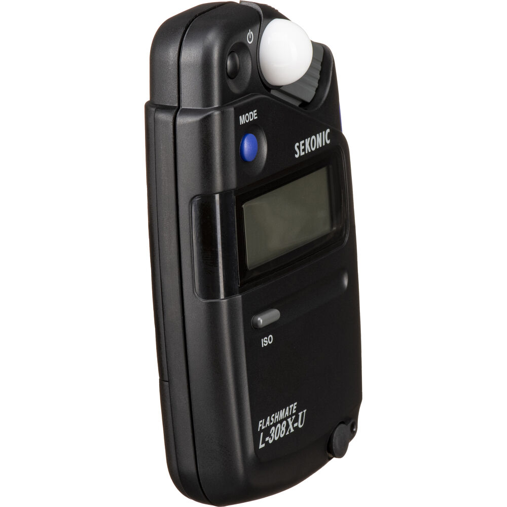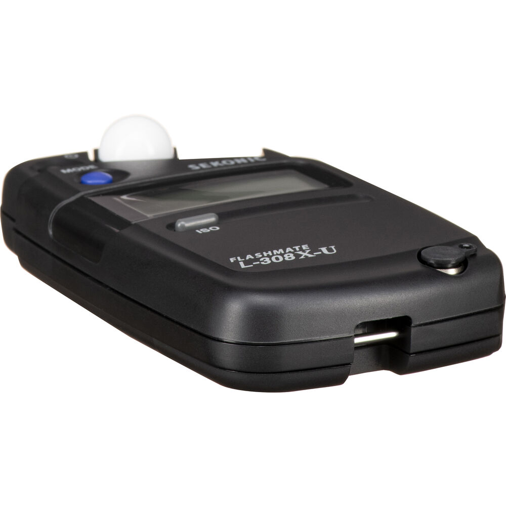 Exceptionally portable and versatile in its design, the L-308X-U Flashmate Light Meter from Sekonic is a versatile meter that blends both photo and video-oriented functions into a single unit. Equipped with a sliding lumisphere, the L-308X is capable of measuring incident or reflected light via a lens with a 40° reception angle. It offers a wide metering range from 0 to 19.9 EV at ISO 100, working with exposure times as low as 1/8000 all the way up to 60 seconds; it also has an equally broad flash range from f/1.0 to f/90.9 at ISO 100.