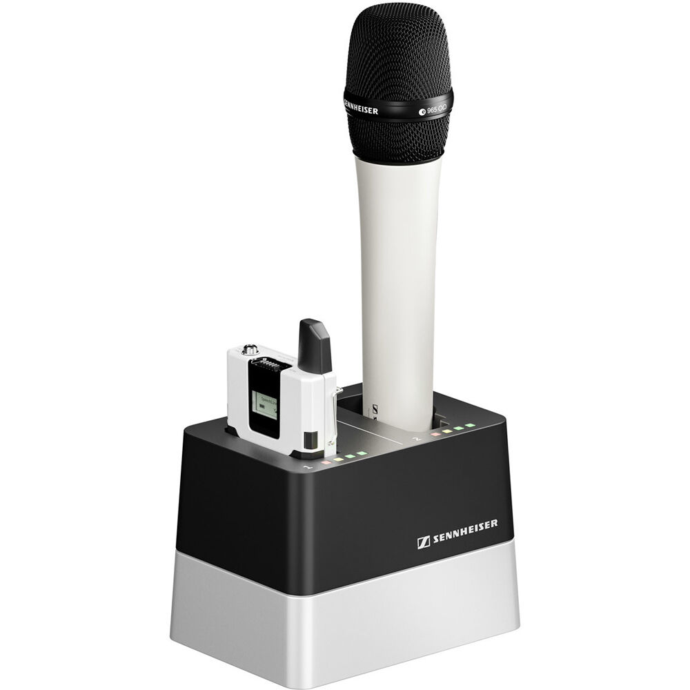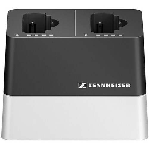The Sennheiser CHG 2N is a network-enabled charger with two separate charging slots. These ports can be used to charge Accupacks while inside a SpeechLine SL Bodypack DW or SL Handheld DW wireless transmitter.