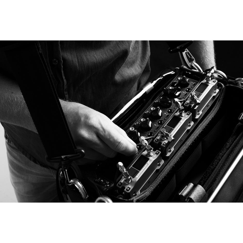 When paired with the appropriate adapter (available separately), the EK 6042 fits into all standard receiver slots on professional video cameras equipped with either UniSlot/SuperSlot or Sony interfaces. Adapters are also available to configure the unit for use in an audio bag, powered by either an external power supply or Accupack batteries for standalone operation.