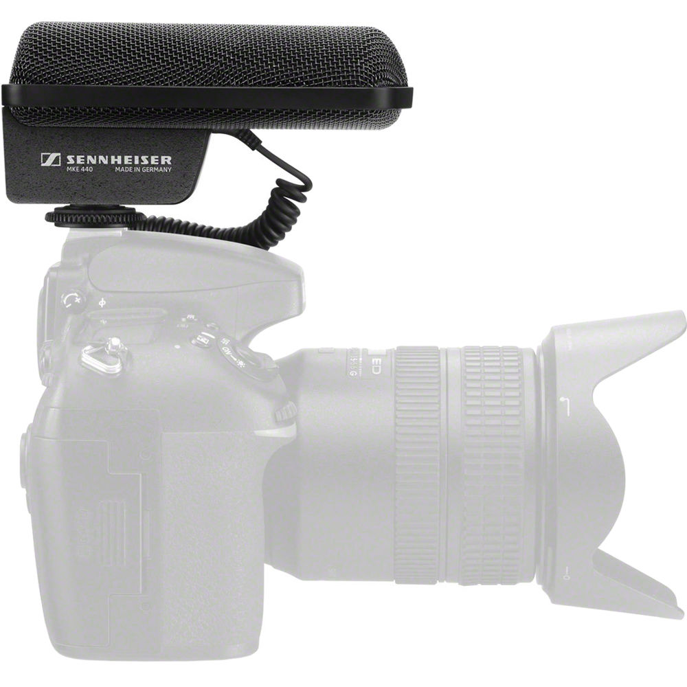 The MKE 440 from Sennheiser is a compact stereo shotgun microphone that predominately captures focused stereo sound from within the direction of filming and rejects the majority of off-axis noise from outside the camera focus. The microphone utilizes two mini-shotgun elements that are mounted in a V-shape arrangement, which outperforms mini AB, MS, or XY setups.