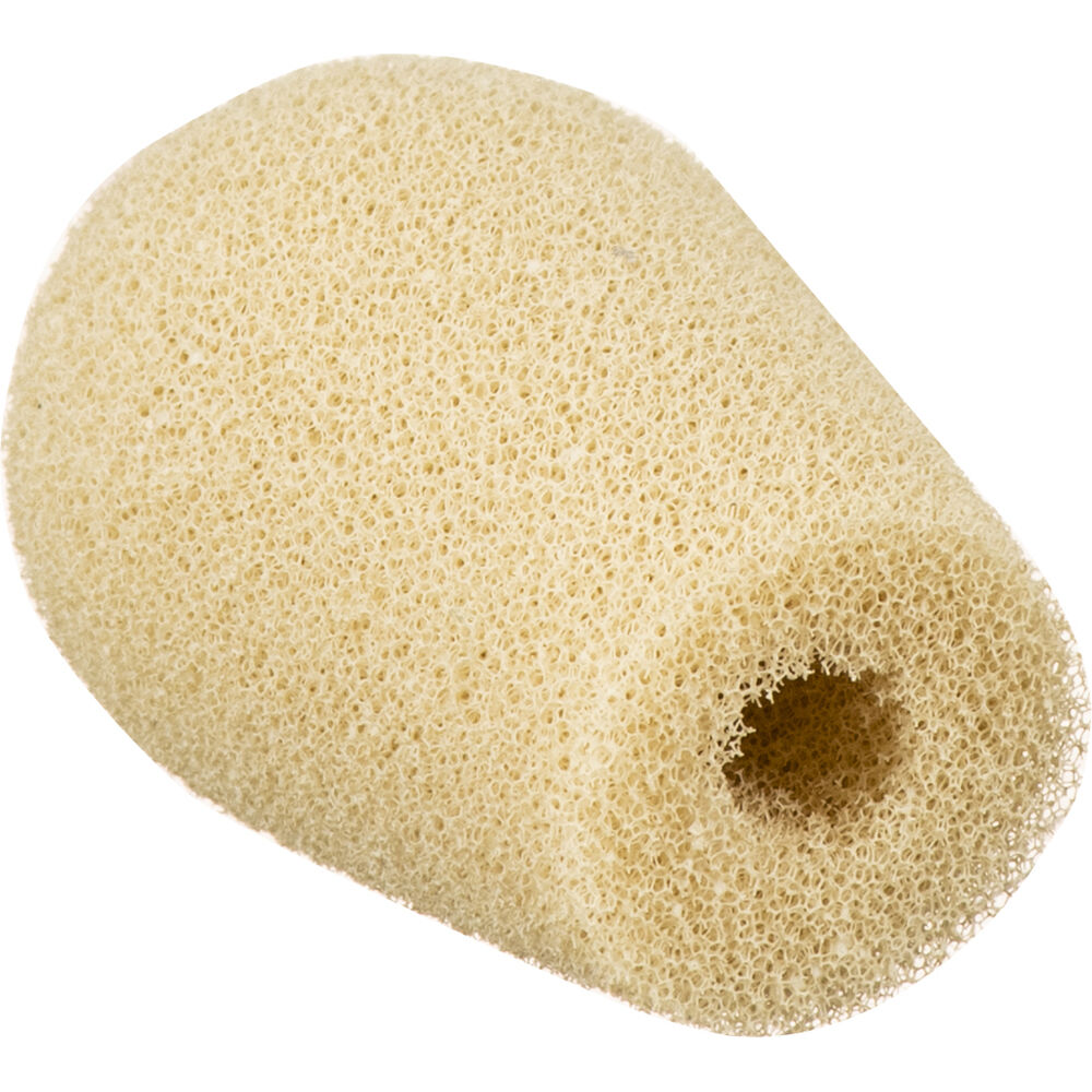 The beige Sennheiser MZW 4 is a foam windscreen that fits over the microphone on the HSP4 headworn mic to reduce breath and plosive noise to provide clearer, more intelligible speech.