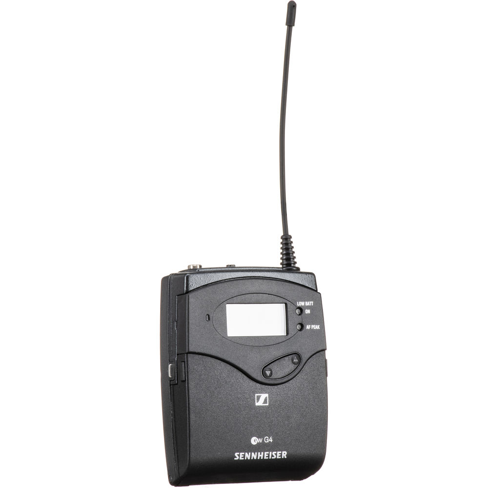 The Sennheiser SK 100 G4 is a waistband wireless transmitter compatible with the EM 100 G4 wireless receiver. Durable metal products are suitable for everyday use on stage by performers and presenters. It provides up to 8 hours of operation on two AA batteries, has a constant RF power output of 30 mW and a transmission range of up to 330 feet. The